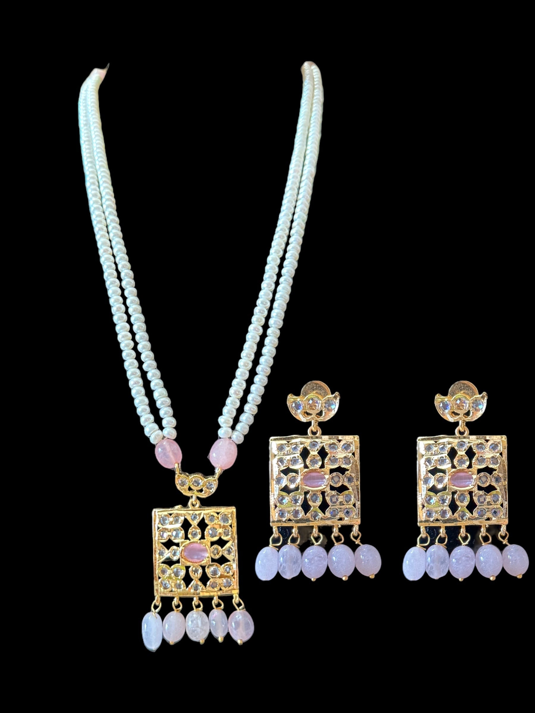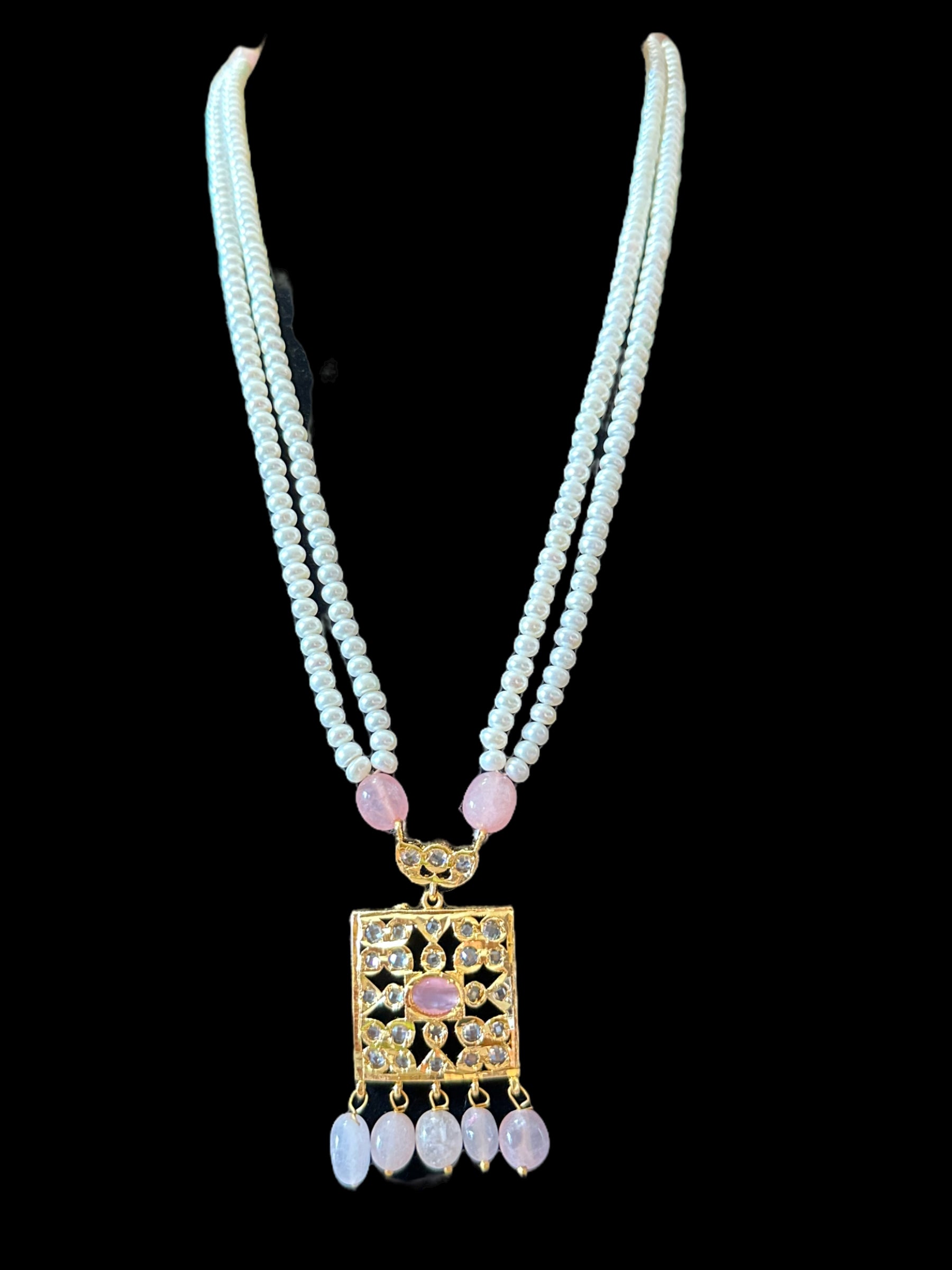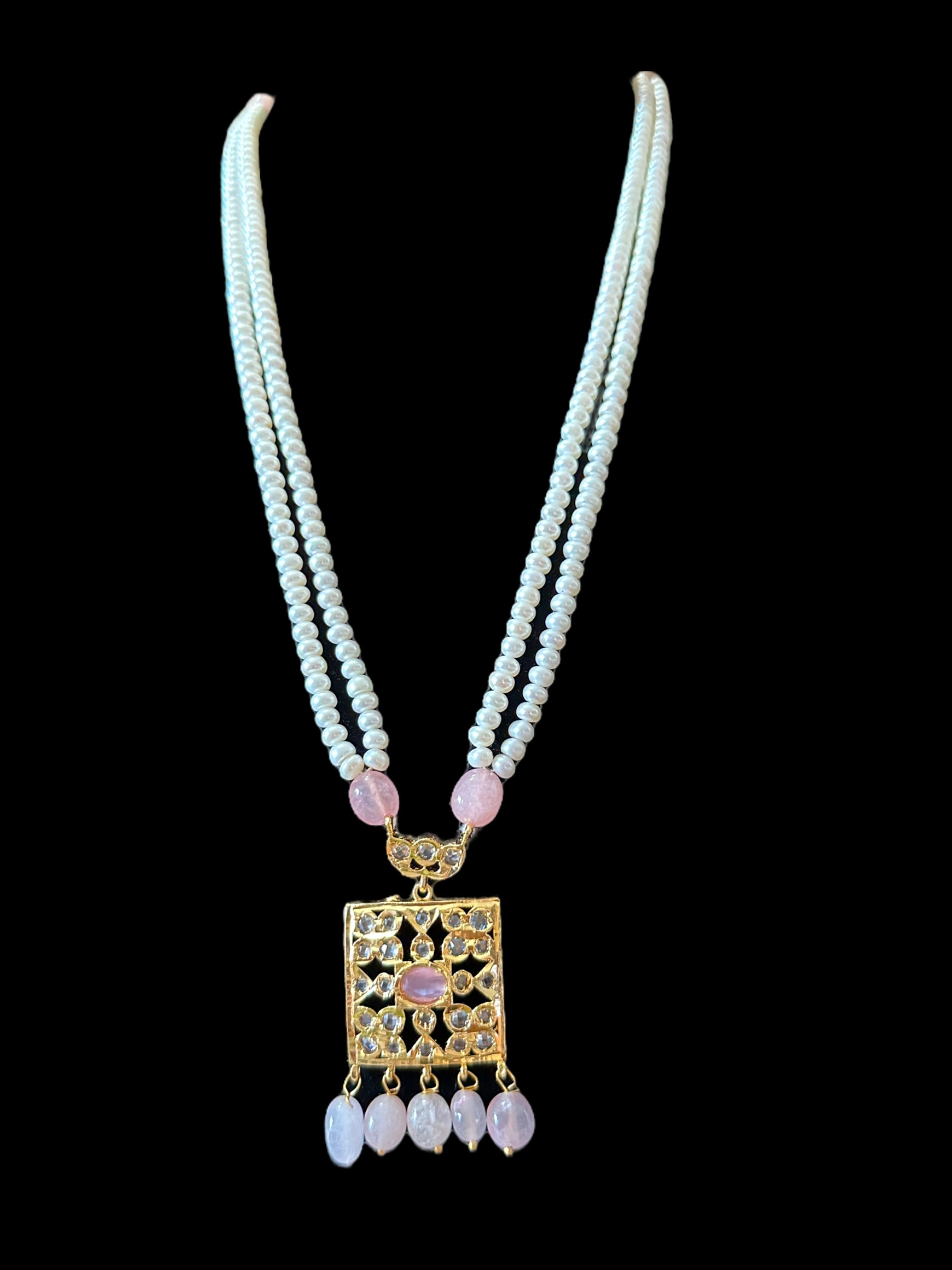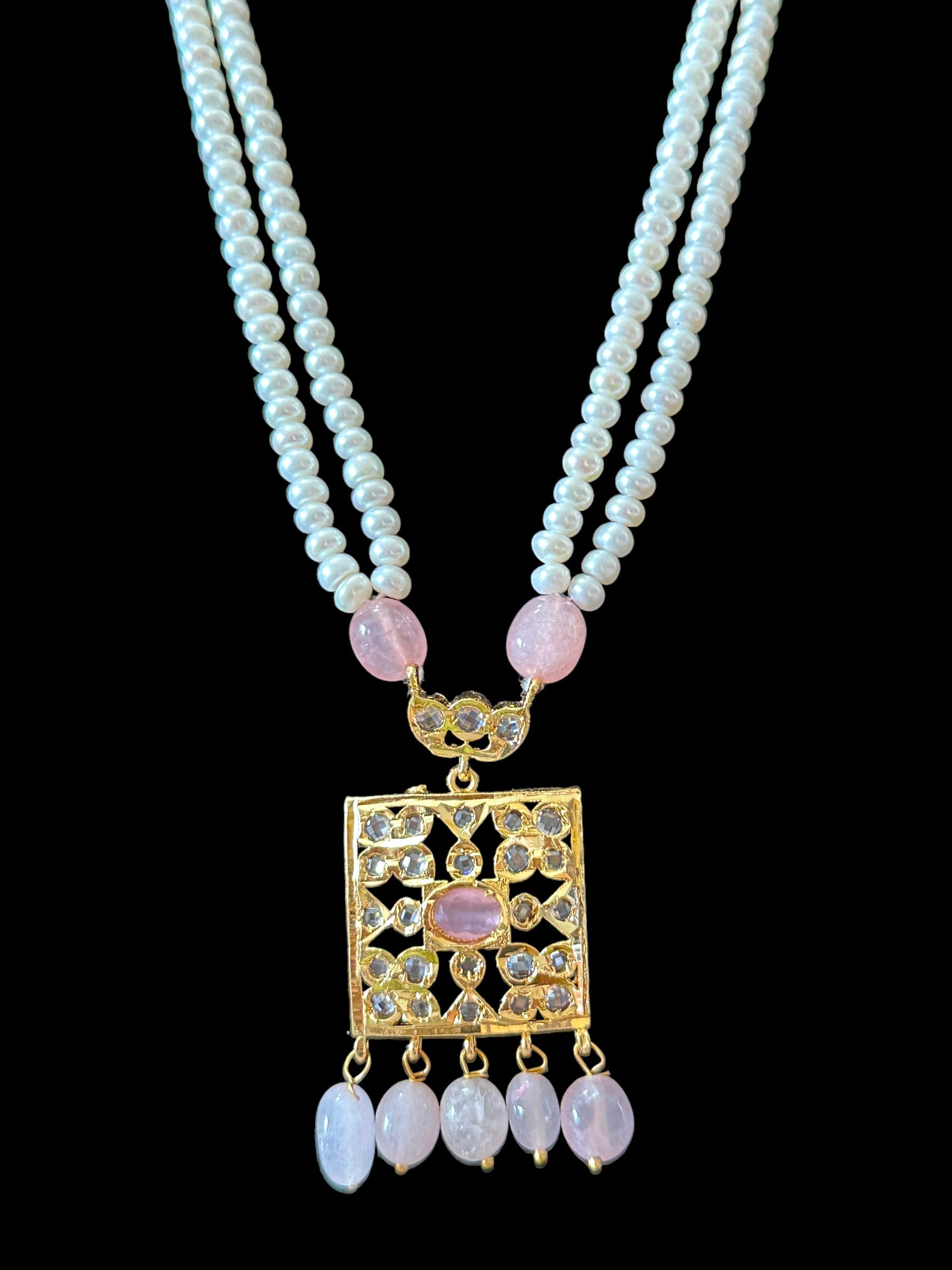 PS444 Zuni fresh water pearl pendant set in rose quartz beads ( READY TO SHIP)