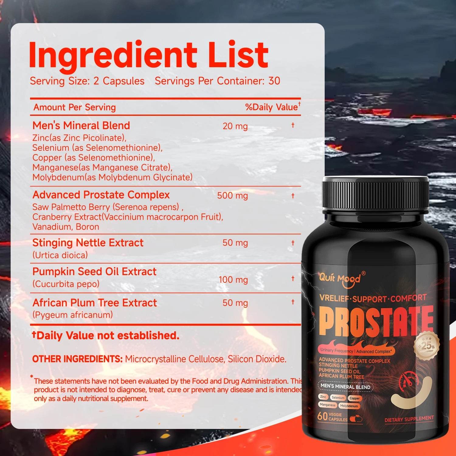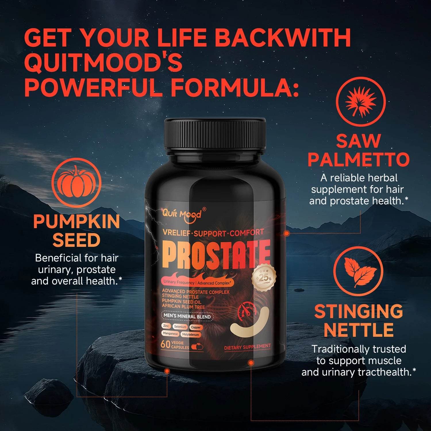 Quit mood - Advanced Prostate Support | Stinging Nettle, Pumpkin Seed Oil & African Plum Extract | 60 Caps - Men’s Health Focus