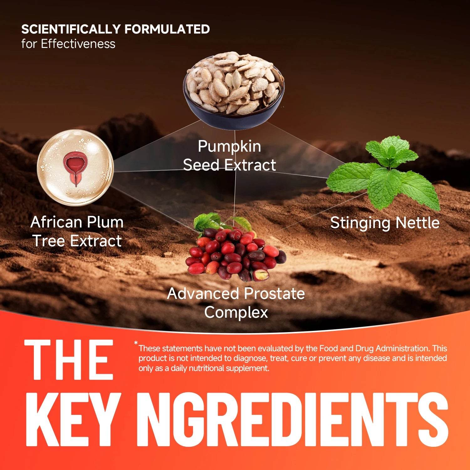 Advanced Prostate Support formula with Stinging Nettle, Pumpkin Seed Oil, and African Plum Extract helps maintain optimal prostate health.