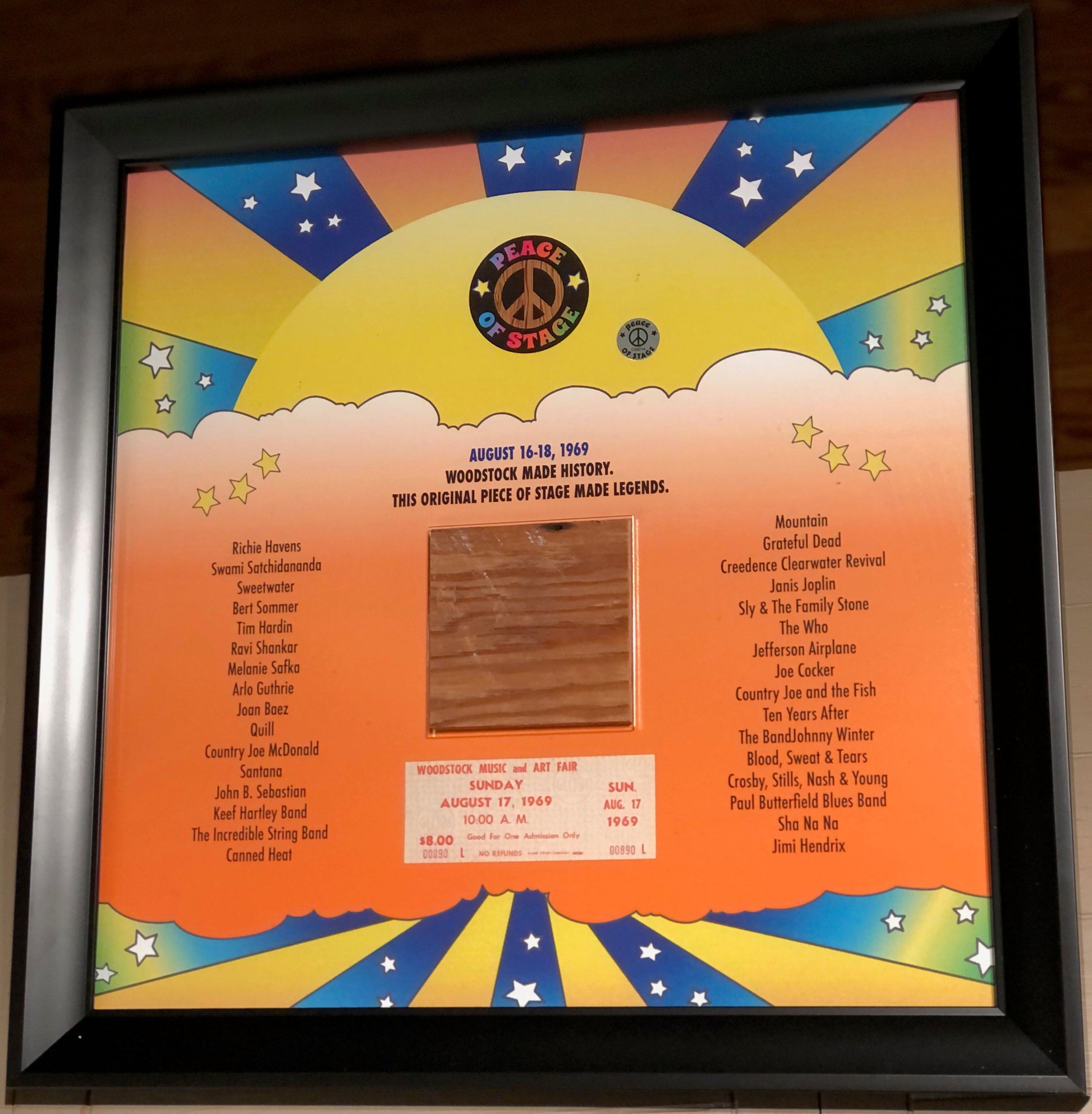 Stage Made Legends Frame With Piece of 1969 Woodstock Stage and Original Ticket