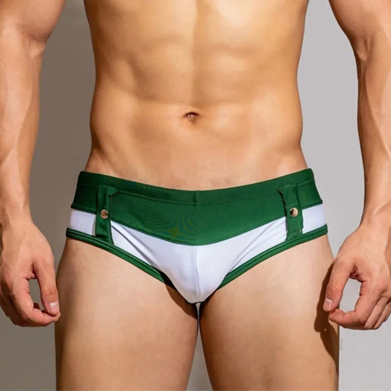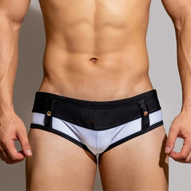 Get ready for the ultimate swim with these Desmiit Suspender Swim Briefs! Made with a mix of nylon and spandex, these briefs are designed to fit true to size and provide a low waist fit for maximum comfort. With an elastic waist and drawstring closure, you can adjust to your liking while the bold patchwork design adds a touch of adventure to your swim look. Available in Asian sizes M, L, XL, and XXL, these briefs come with a lining for added support. Don't be afraid to take risks in these daring and stylish swimming trunks. Unleash your adventurous side with these Desmiit Suspender Swim Briefs! Designed with your comfort in mind, these briefs offer a low waist fit and adjustable waistband so you can take on any challenge with ease. The bold patchwork design adds a touch of boldness to your swim look, while the lining provides additional support. Don't settle for ordinary swimwear - dare to make a statement with these ultimate swim briefs. Available in Asian sizes M, L, XL, and XXL. Bring on the risk-taking!