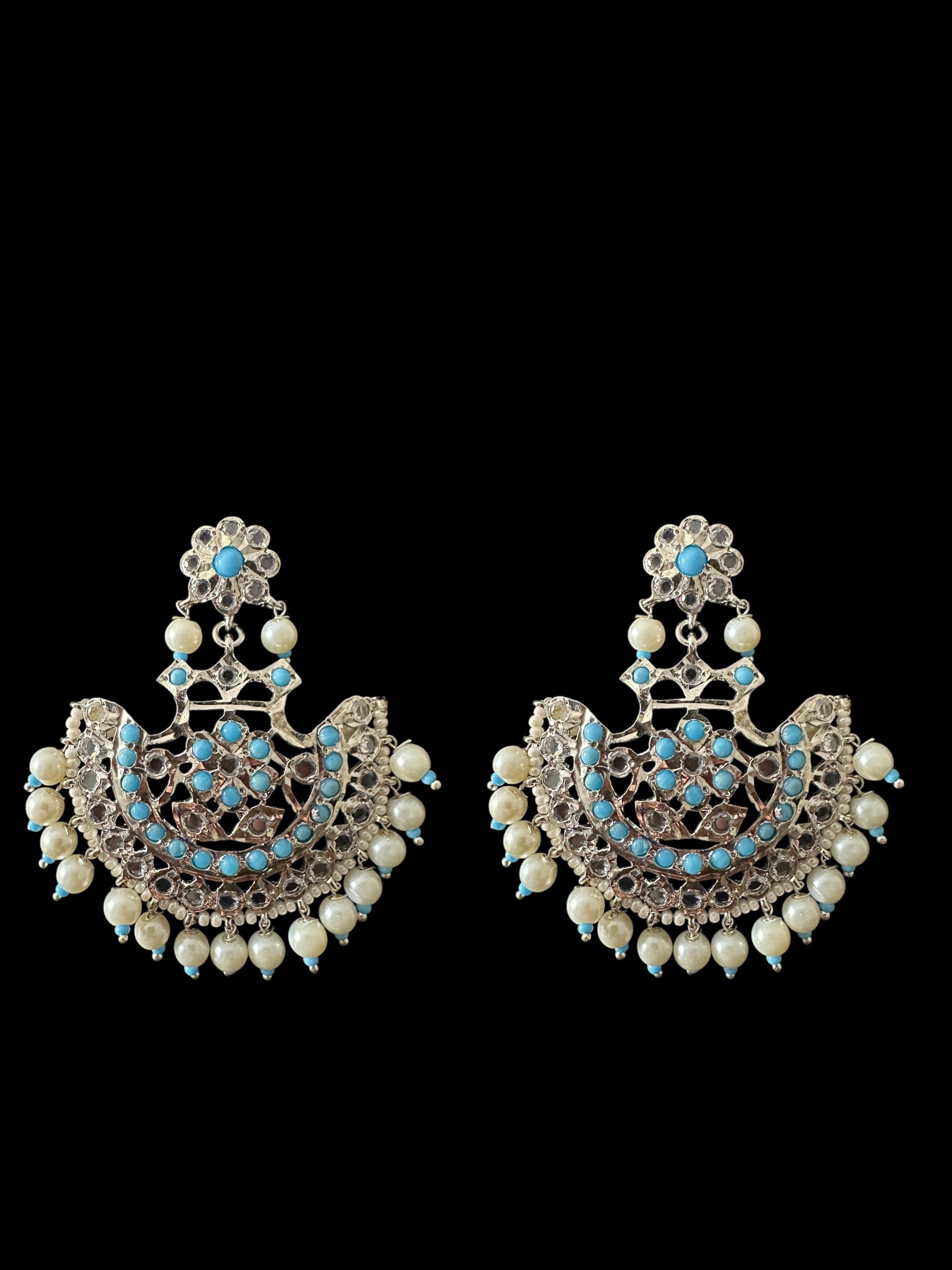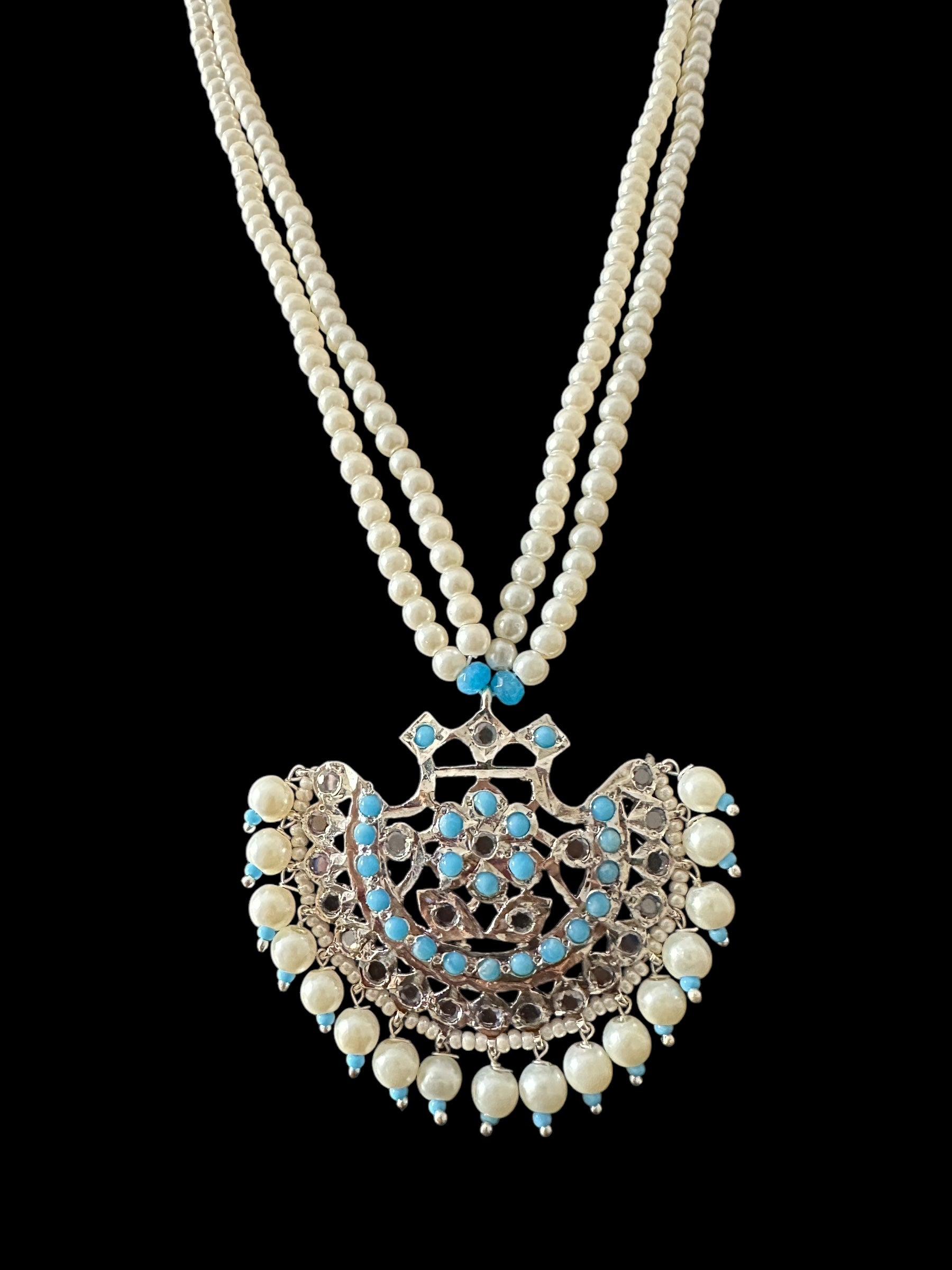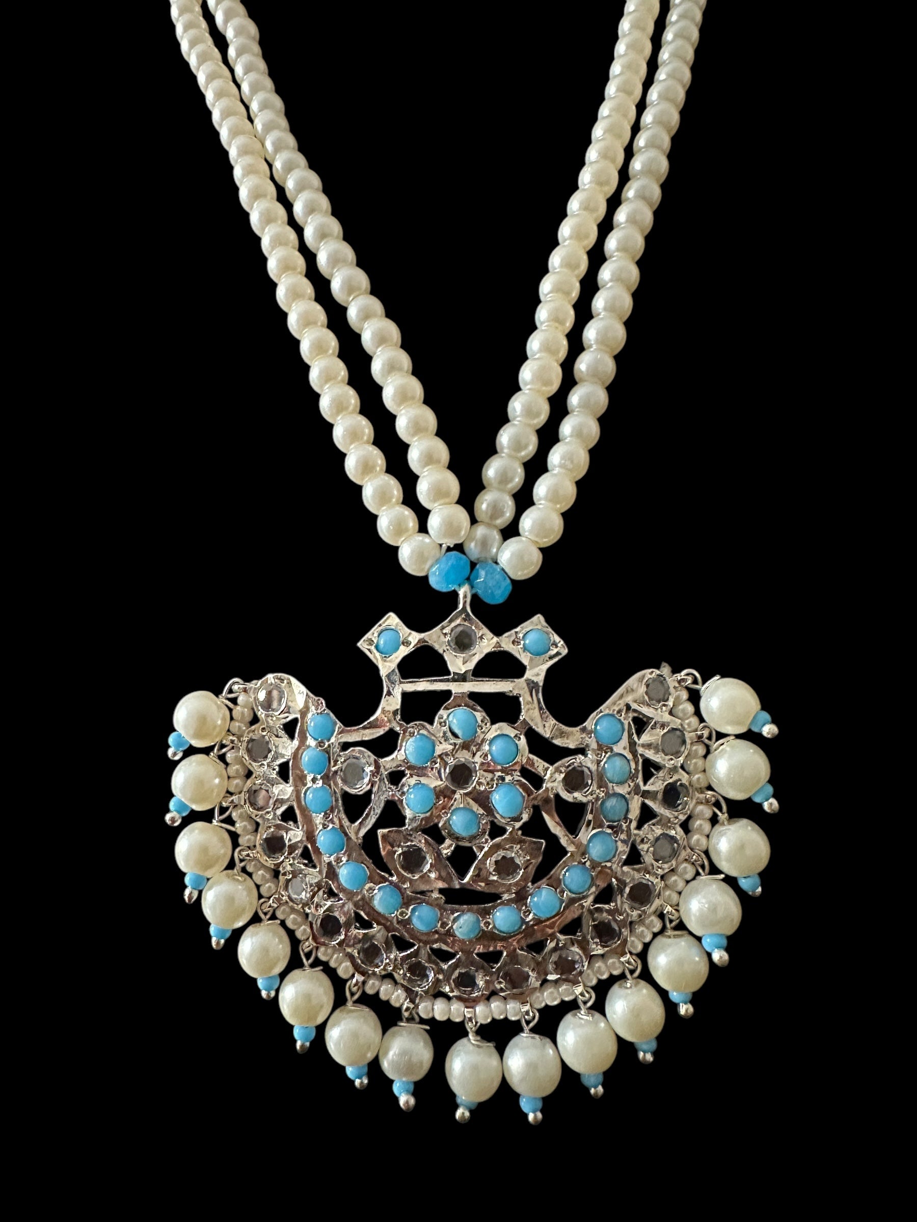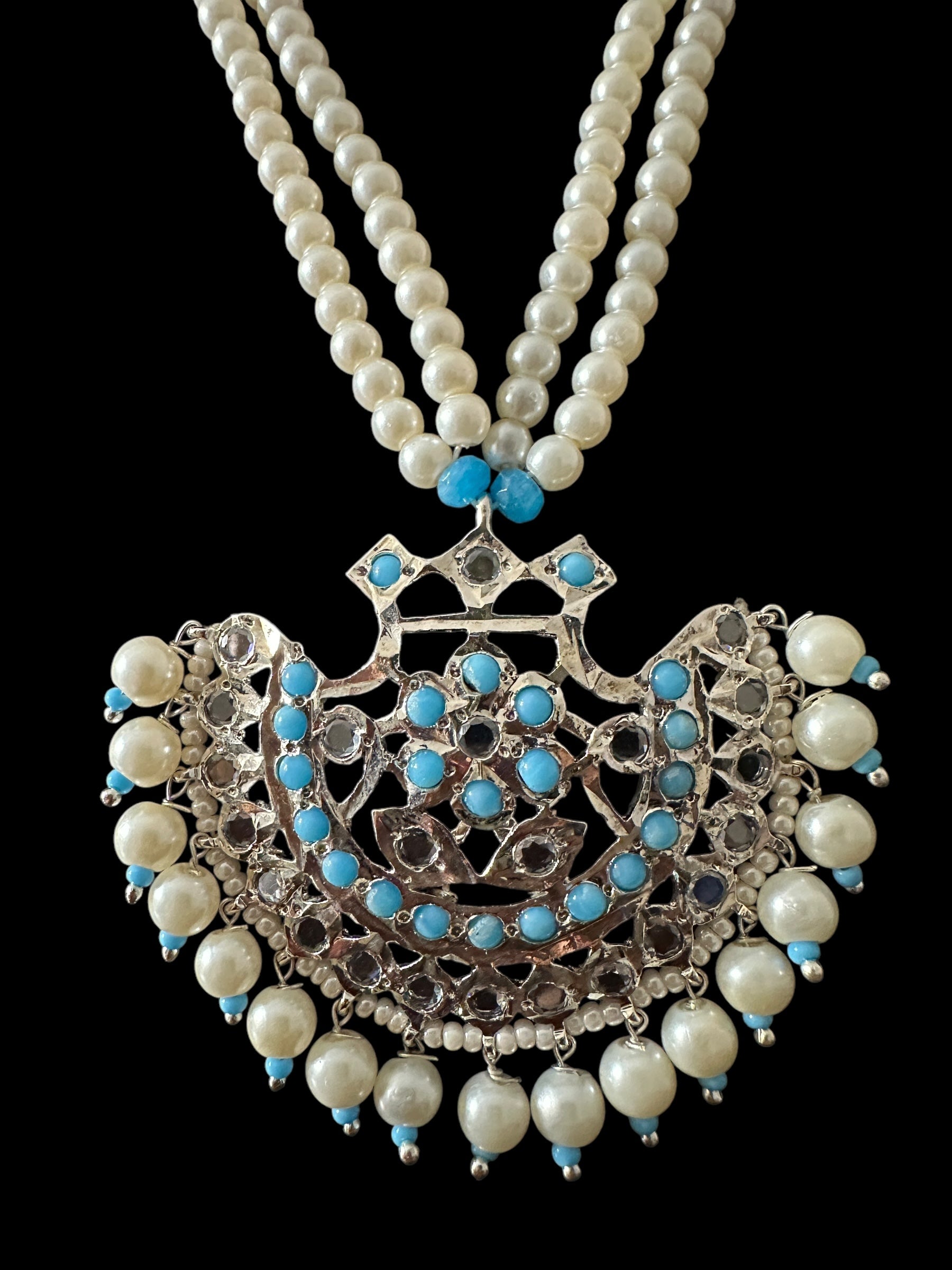 Turquoise / feroza hyderabadi silver plated pendant set with pearls ( READY TO SHIP )