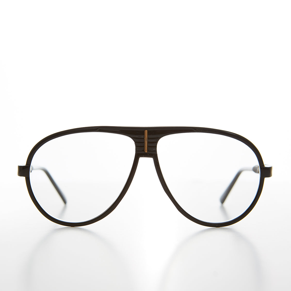 This awesome 80s, aviator features a clear lens transition Corning SunSensor glass lens that darkens into a sunglass with the suns intensity. Quality acetate frame with gold bridge and coil accent temples. A truly great blast from the past.