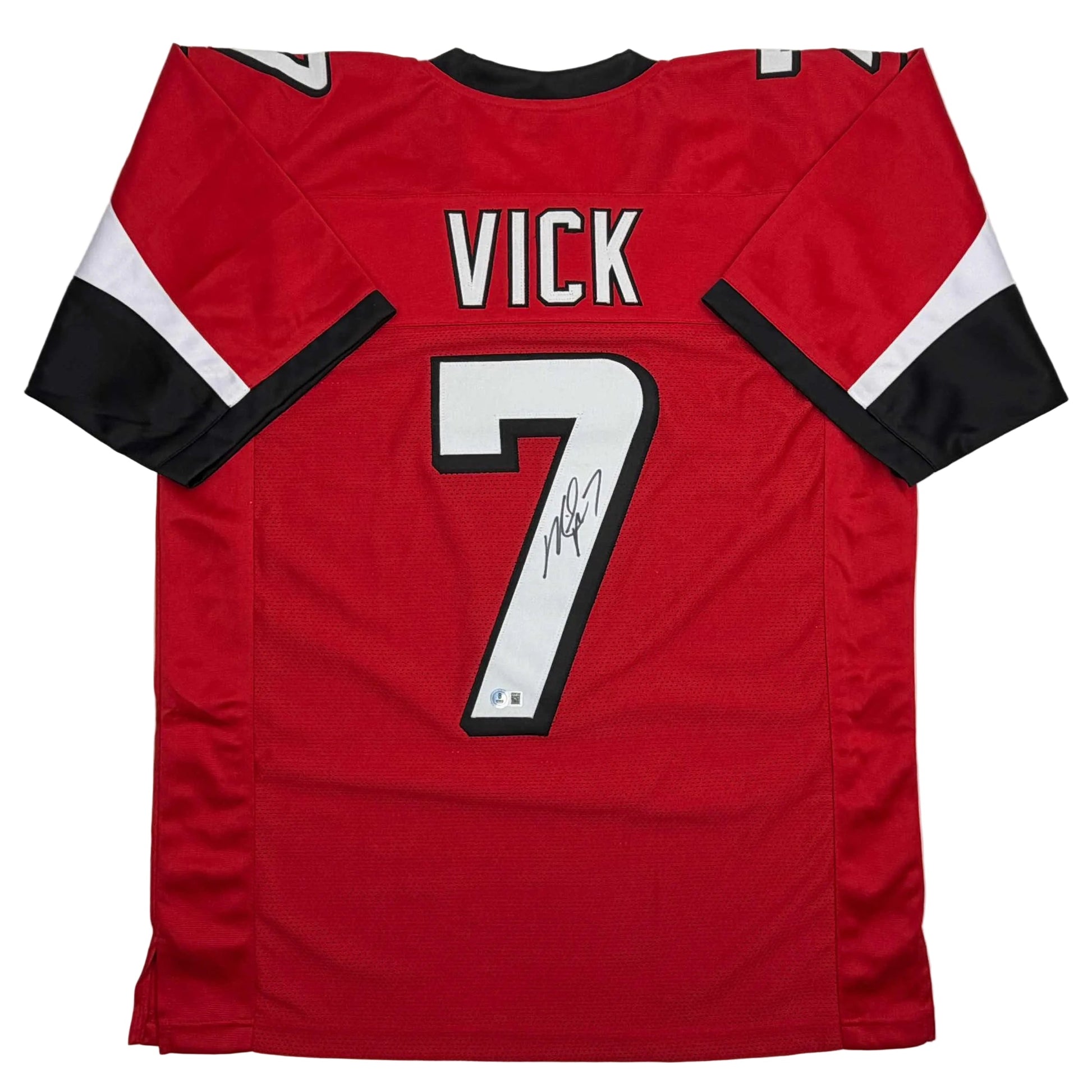 Autographed/Signed Michael Mike Vick Atlanta Red Football Jersey Beckett BAS COA