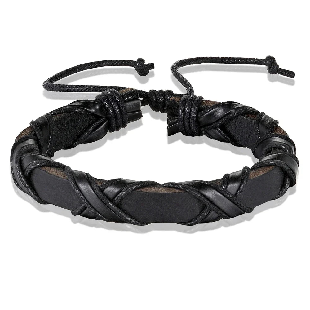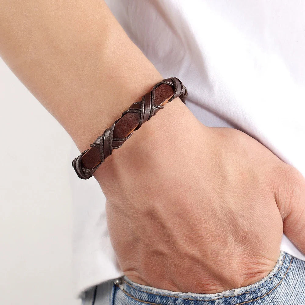 Black/Brown Faux Leather Bracelet Punk Men Jewelry