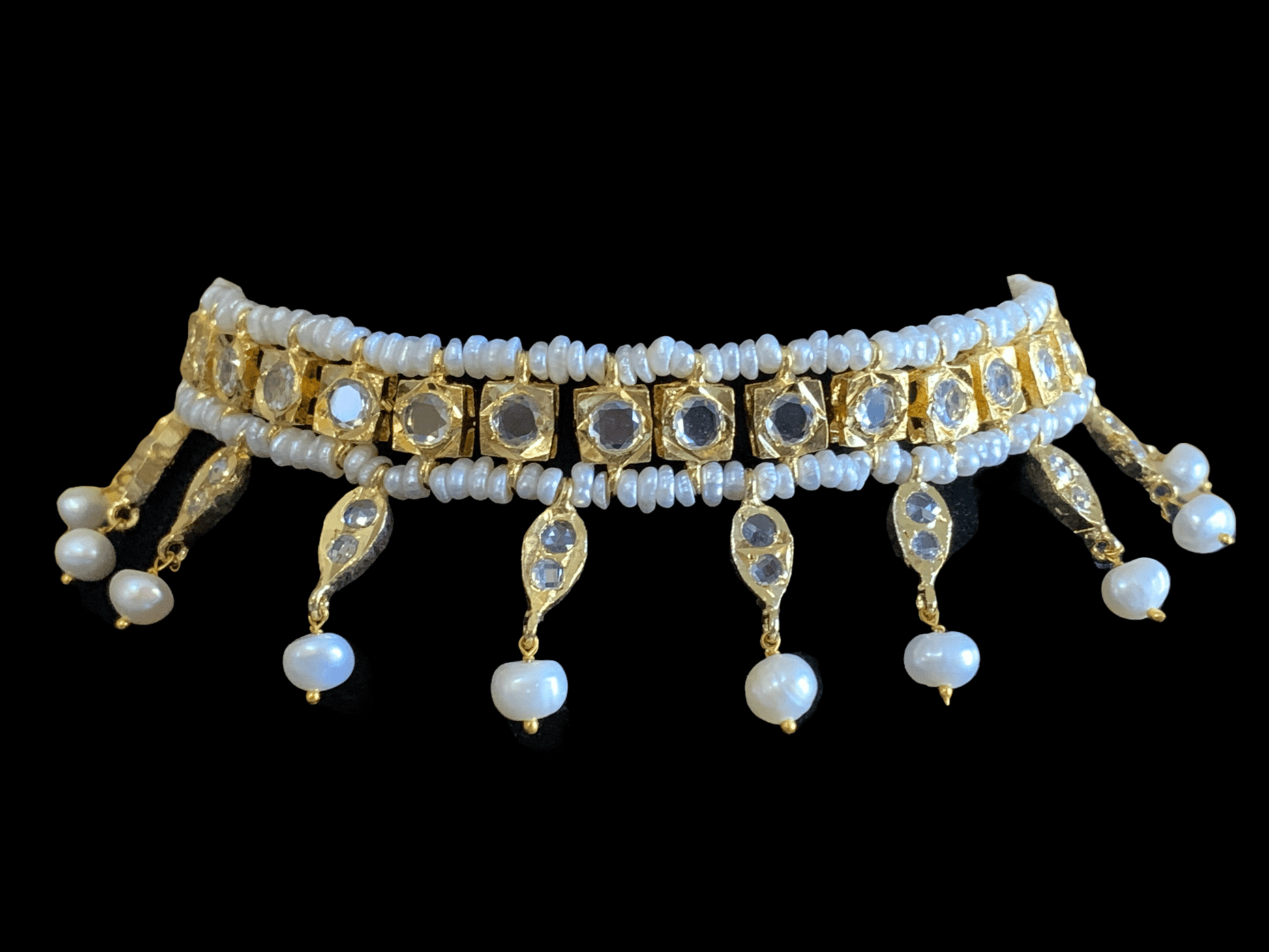 made using real fresh water pearls with polki and 22ct gold plating