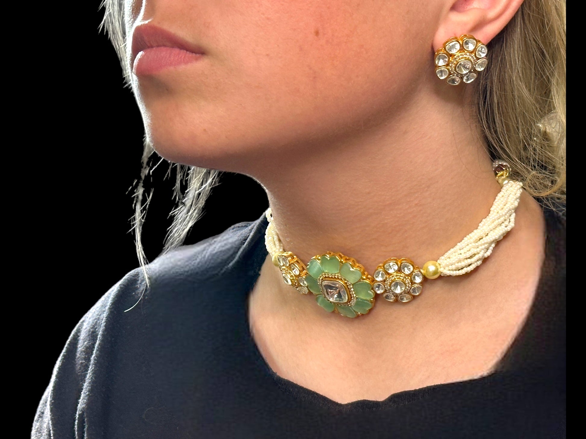 C256 high quality Polki choker with earrings ( READY TO SHIP )