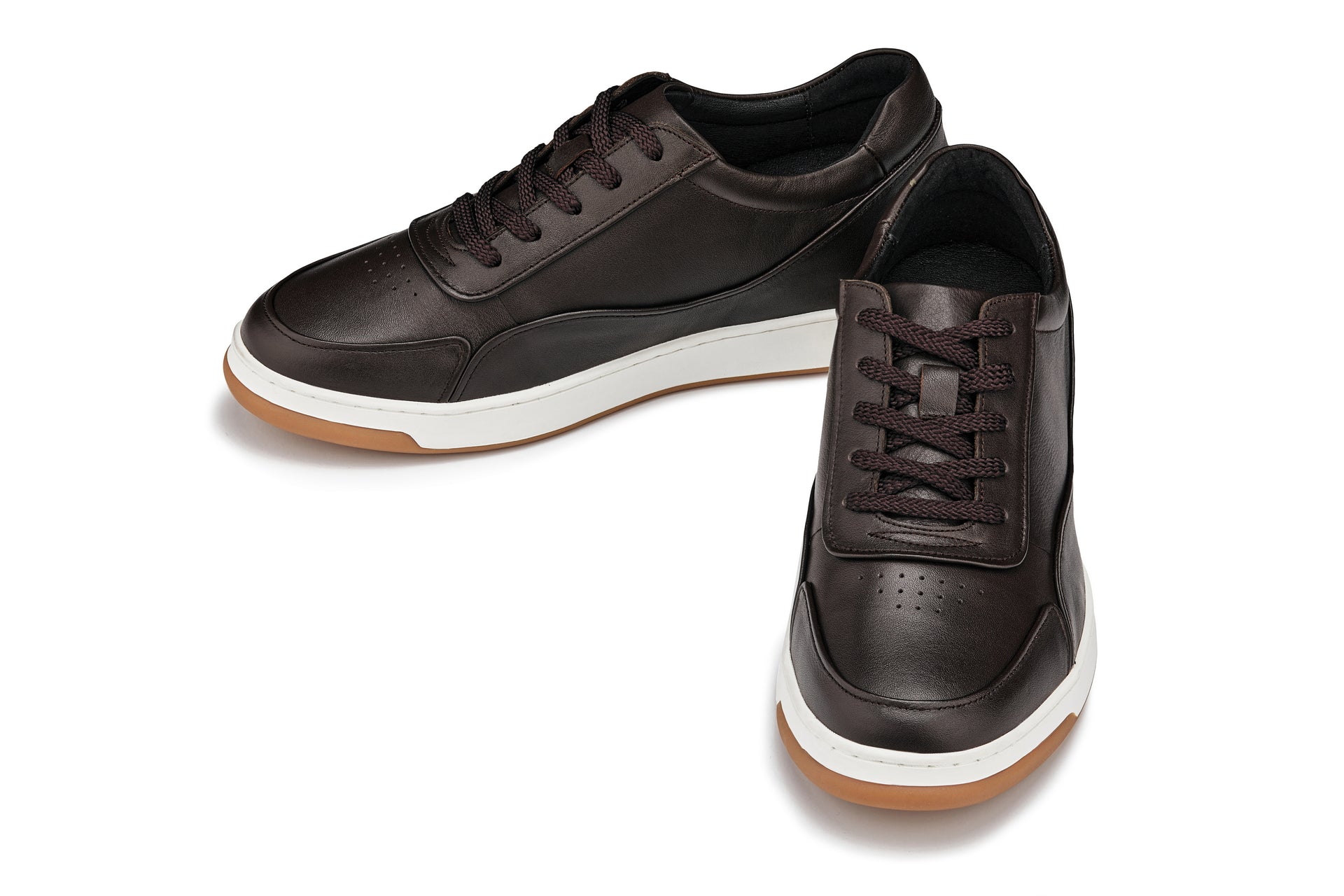 CALTO - Y7887 - 2.6 Inches Taller (Deep Espresso/White & Gum Sole) - Elevated Leather Sneakers