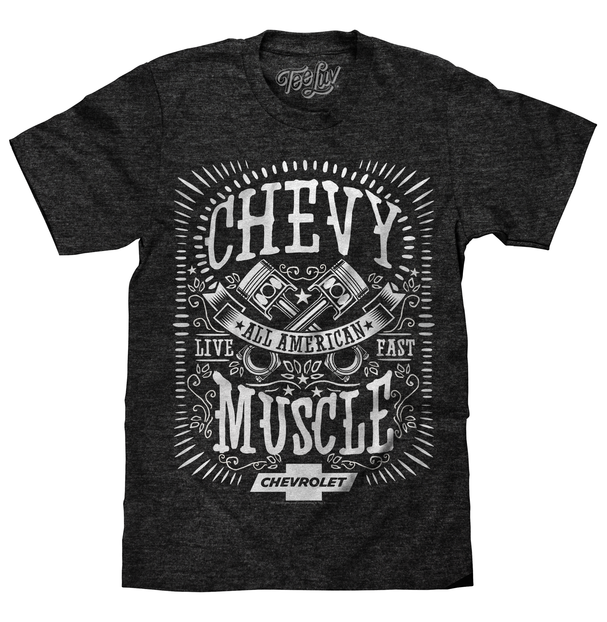 The Chevrolet bowtie logo is an always recognizable symbol of strength, durability and toughness - all of the qualities in the American muscle cars that we know and love. Inspired by this emblem, our team created an equally tough graphic featuring the authentic licensed Chevrolet logo and "All American Muscle" text for this car shirt.