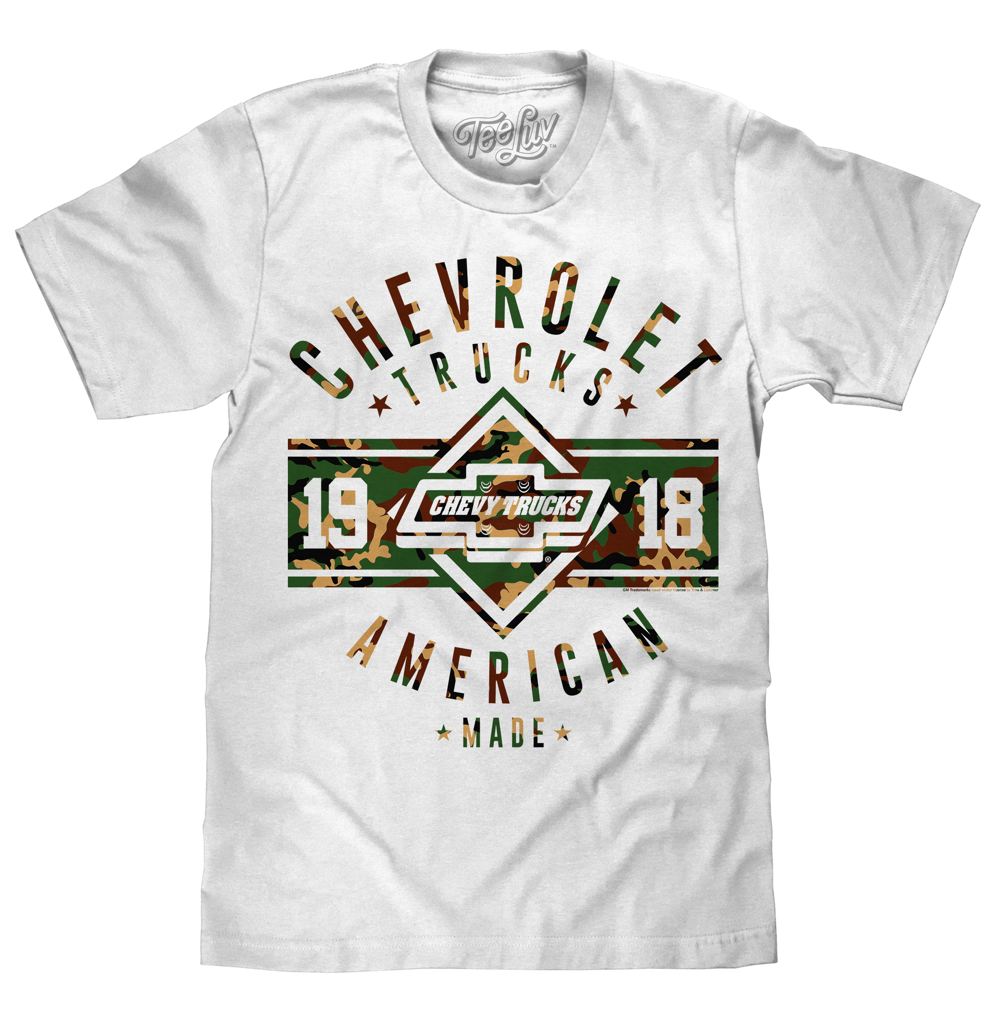 As an extra nod to Chevy trucks' adventurous roots, we added a camoflauge pattern to the graphic and text. To complete the retro look and feel - we printed it on the softest and highest quality white cotton tee around. Perfect for your next summer adventure, or just everyday casual wear!