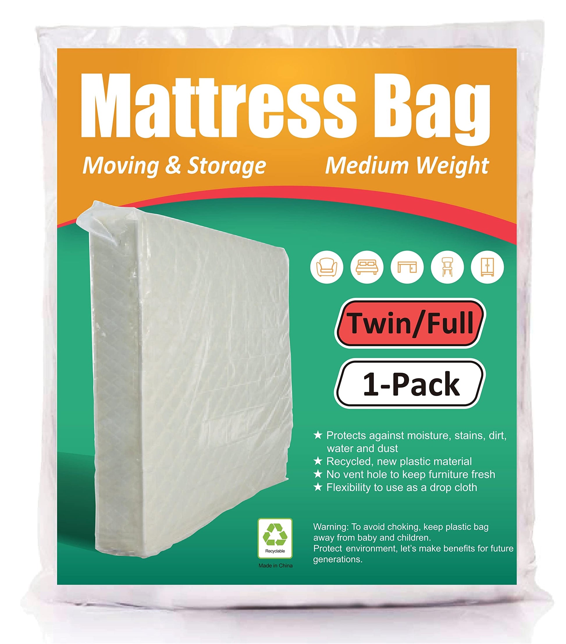 ComfortHome Mattress Bag for Moving and Storage, 3 Mil Thick, Fits Twin and Full Size Mattress, 1 Pack