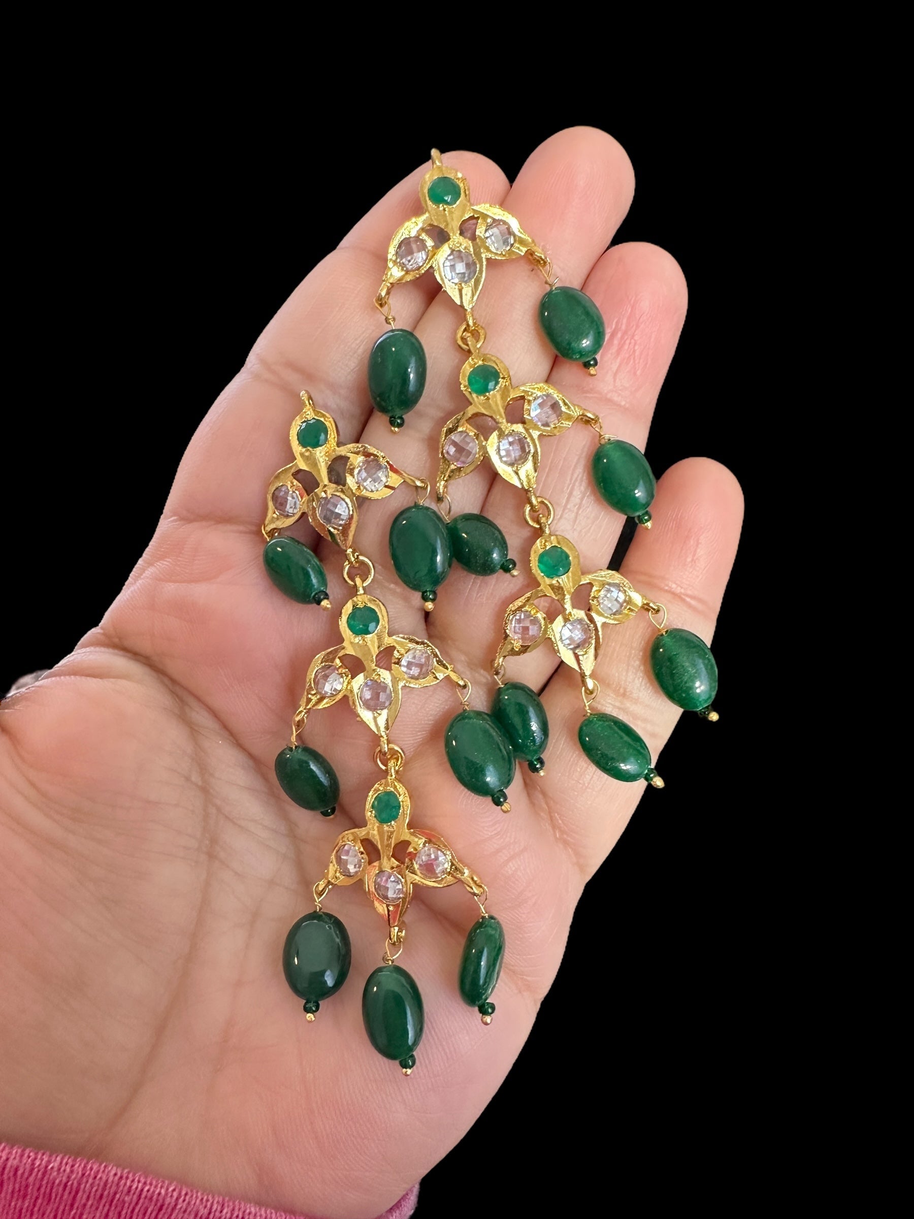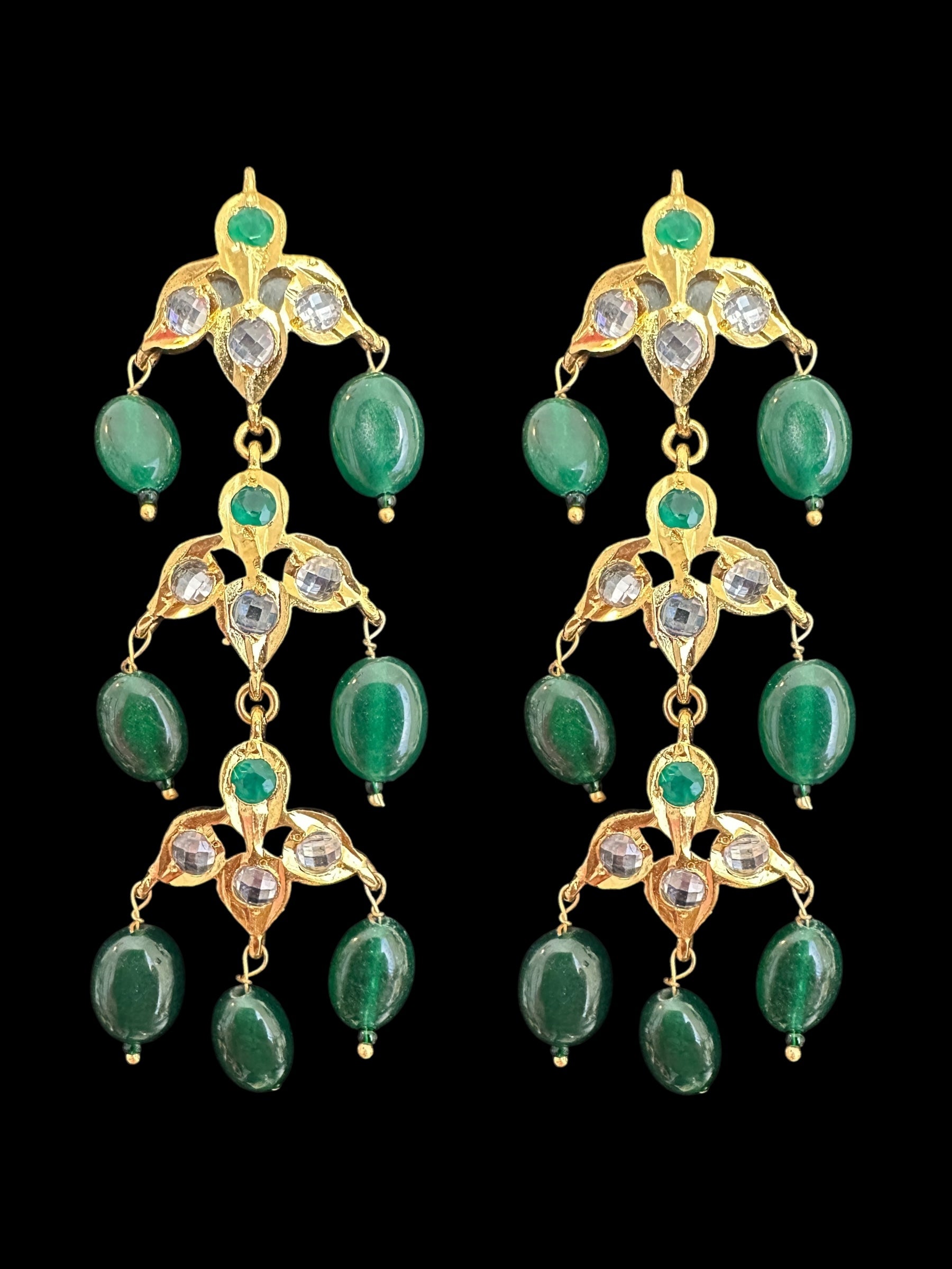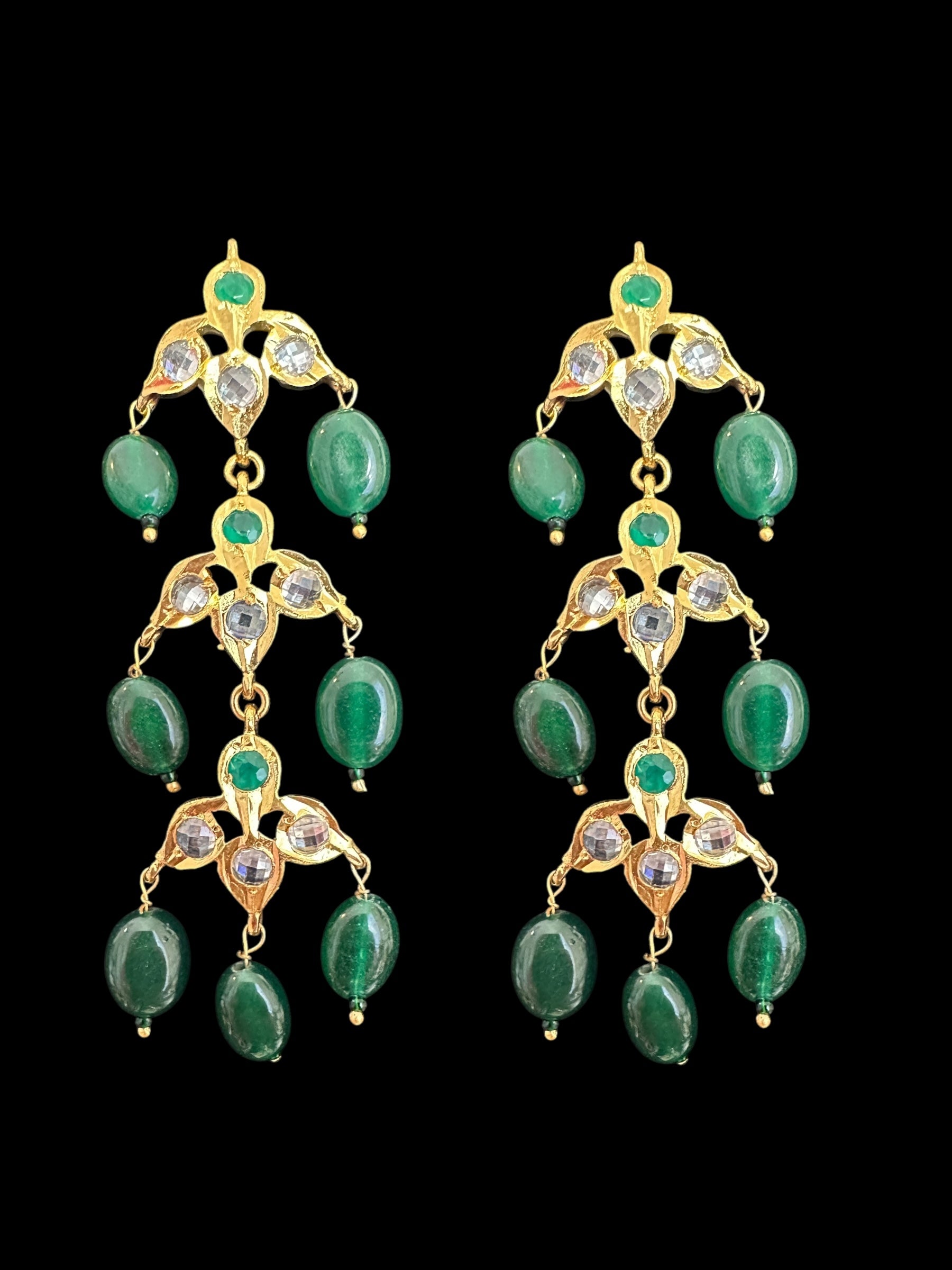 DER766 Savera Hyderabadi three layered earrings in Green (READY TO SHIP )