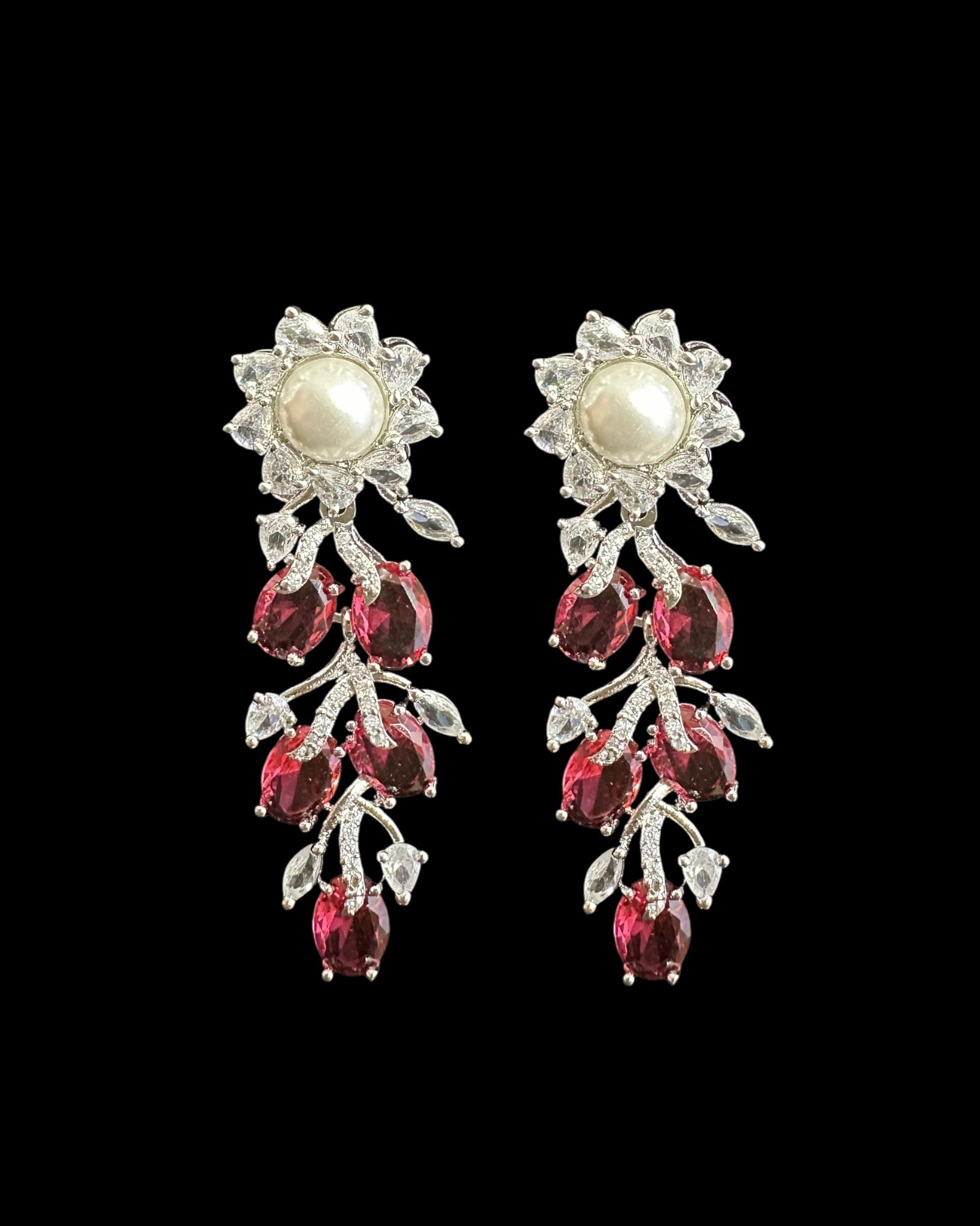 DNS137R silver plated necklace set - Ruby ( READY TO SHIP )