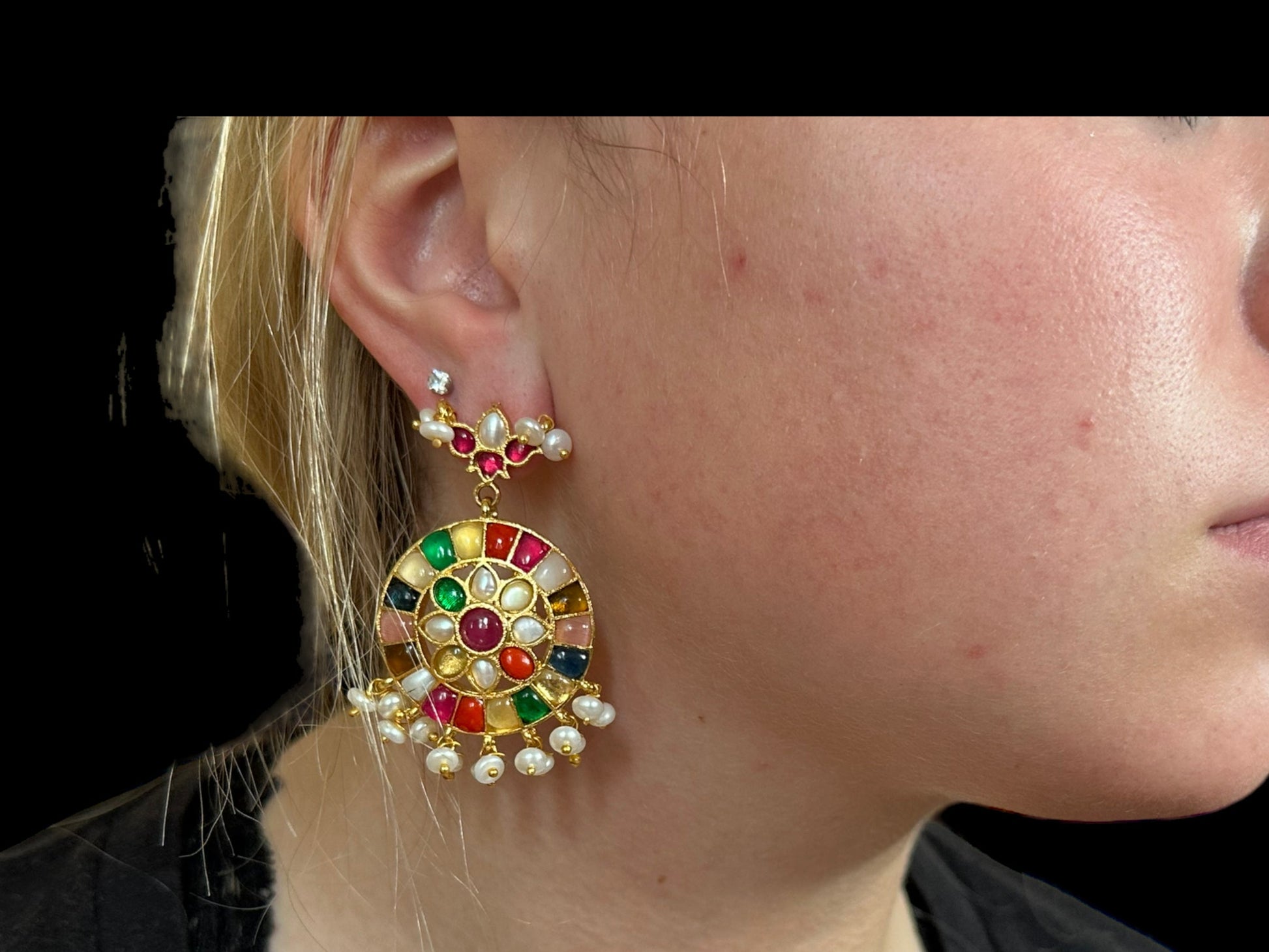 DNS18 Navratan necklace set in fresh water pearls (READY TO SHIP) )