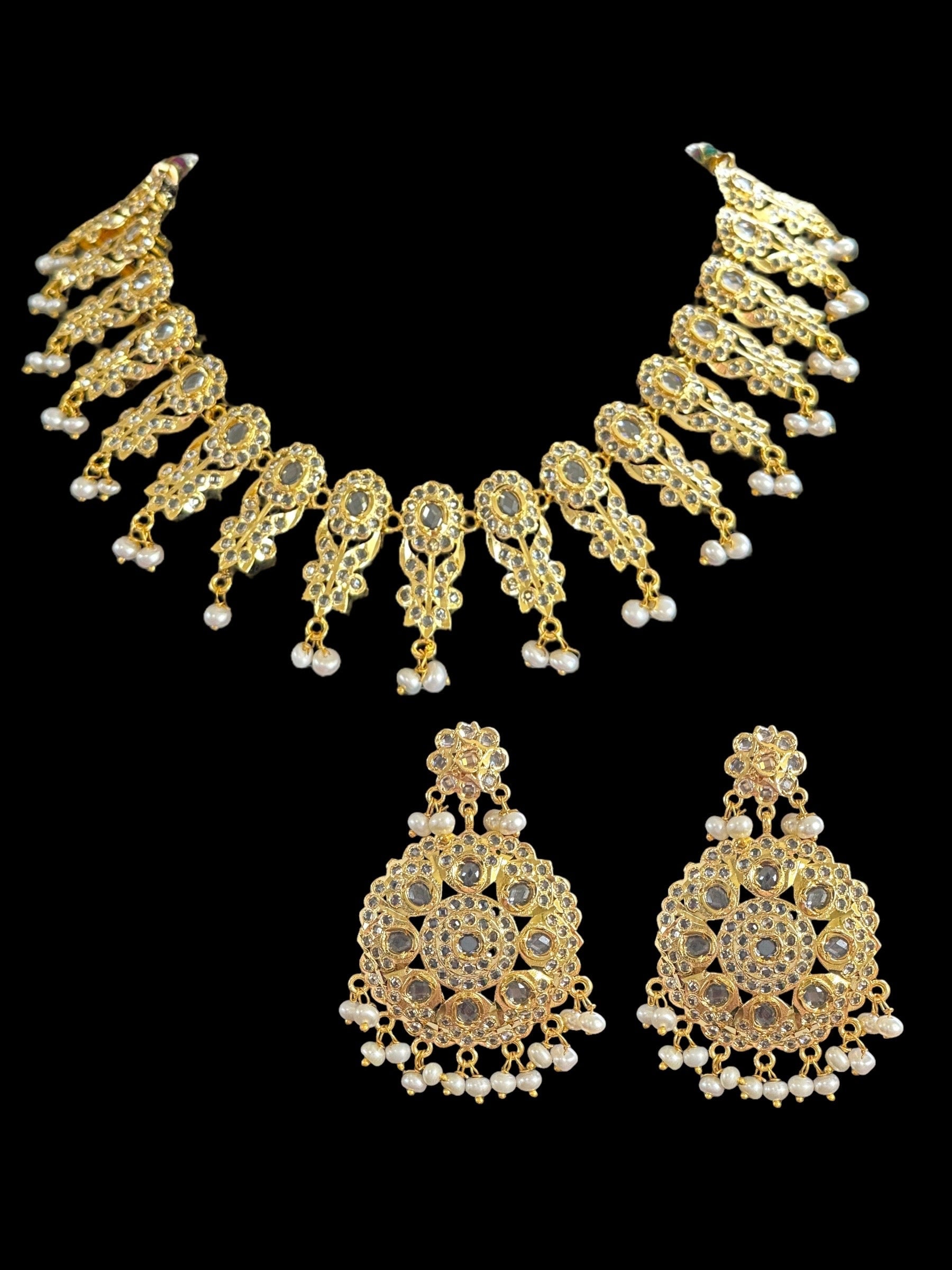 DNS48 Simeon gold plated Hyderabadi necklace in fresh water pearls ( READY TO SHIP) (Copy)