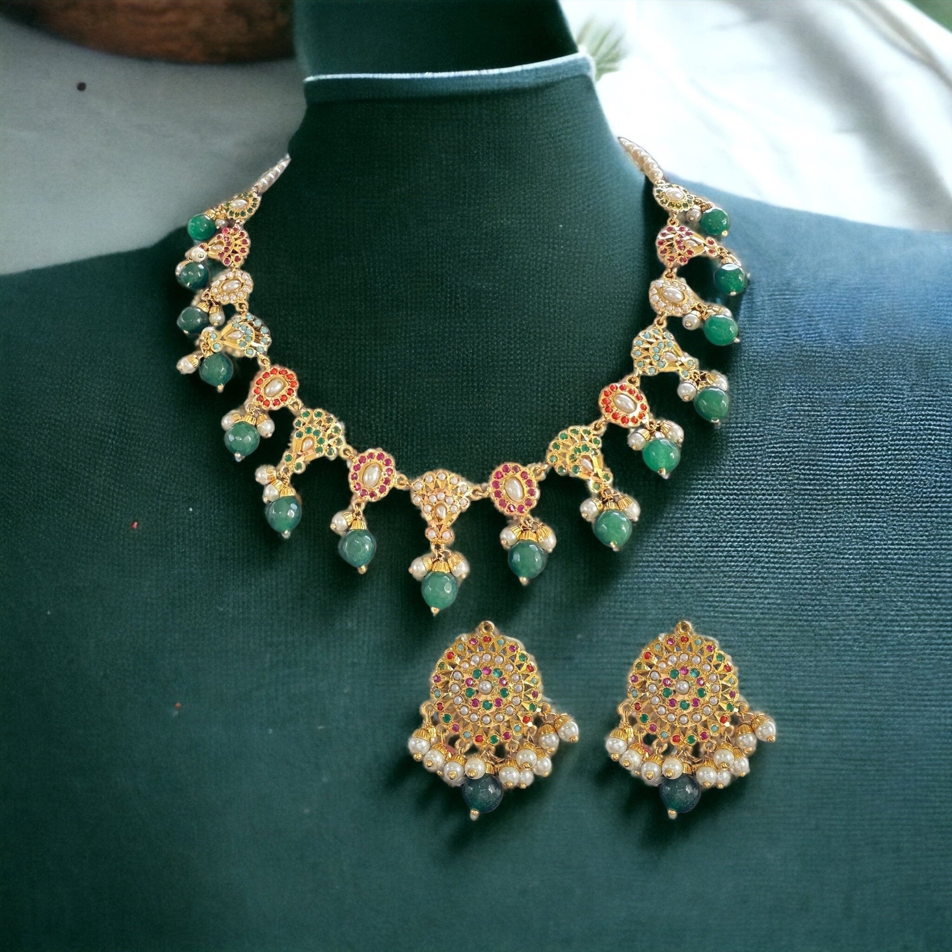 DNS53 Navratan Jadau necklace set ( READY TO SHIP )
