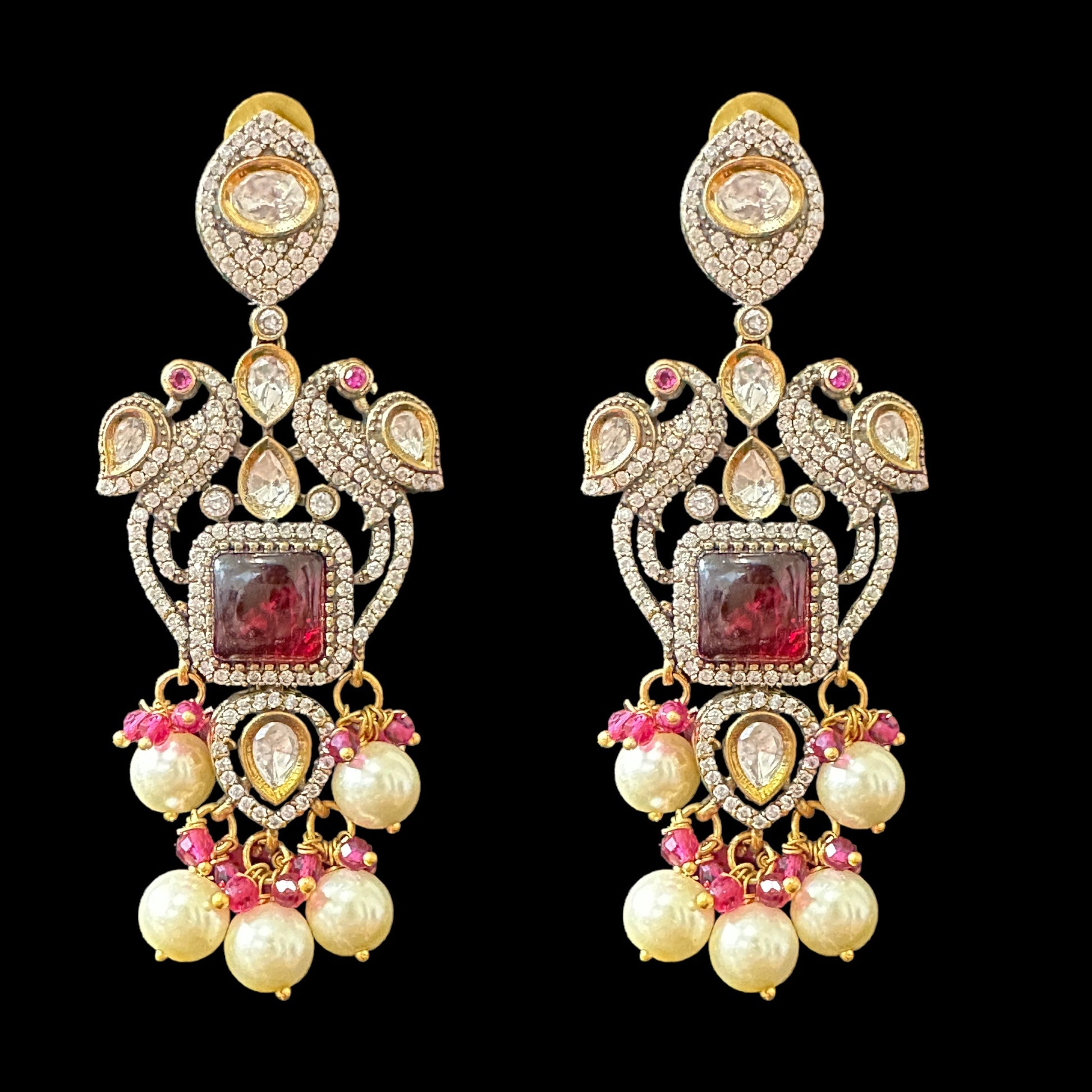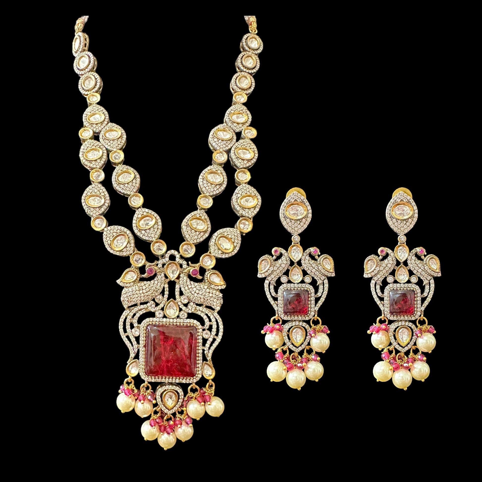 DNS83 Victorian inspired necklace with earrings in red ( READY TO SHIP)