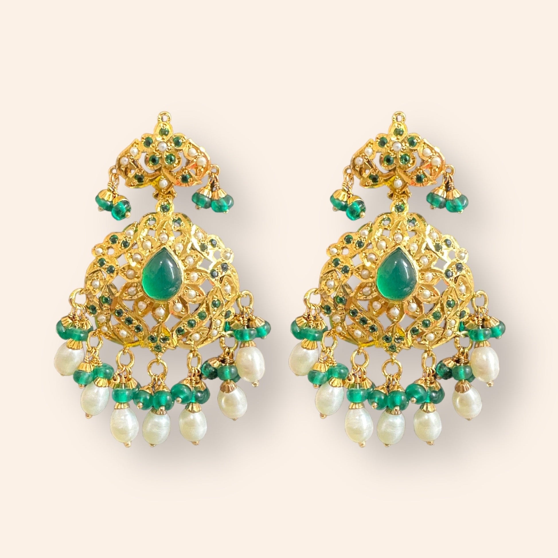 Emerald pearl gold plated silver earrings ( READY TO SHIP )