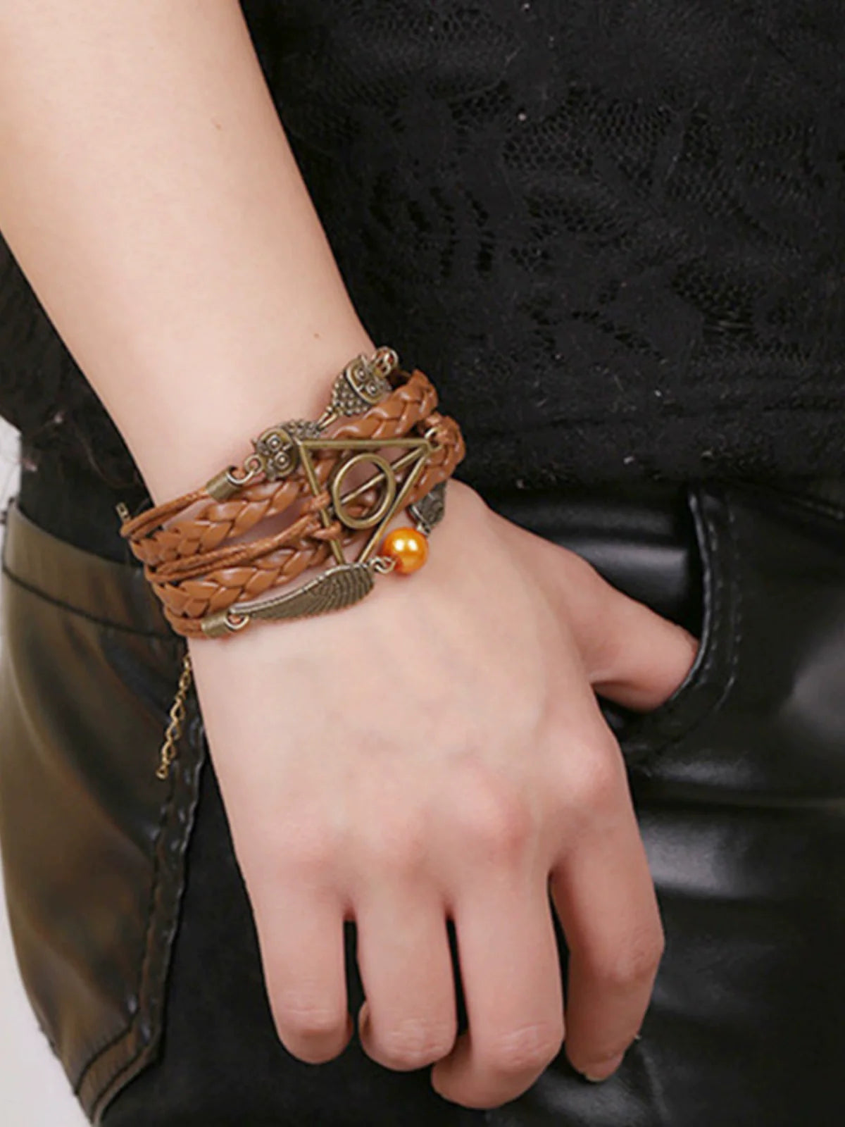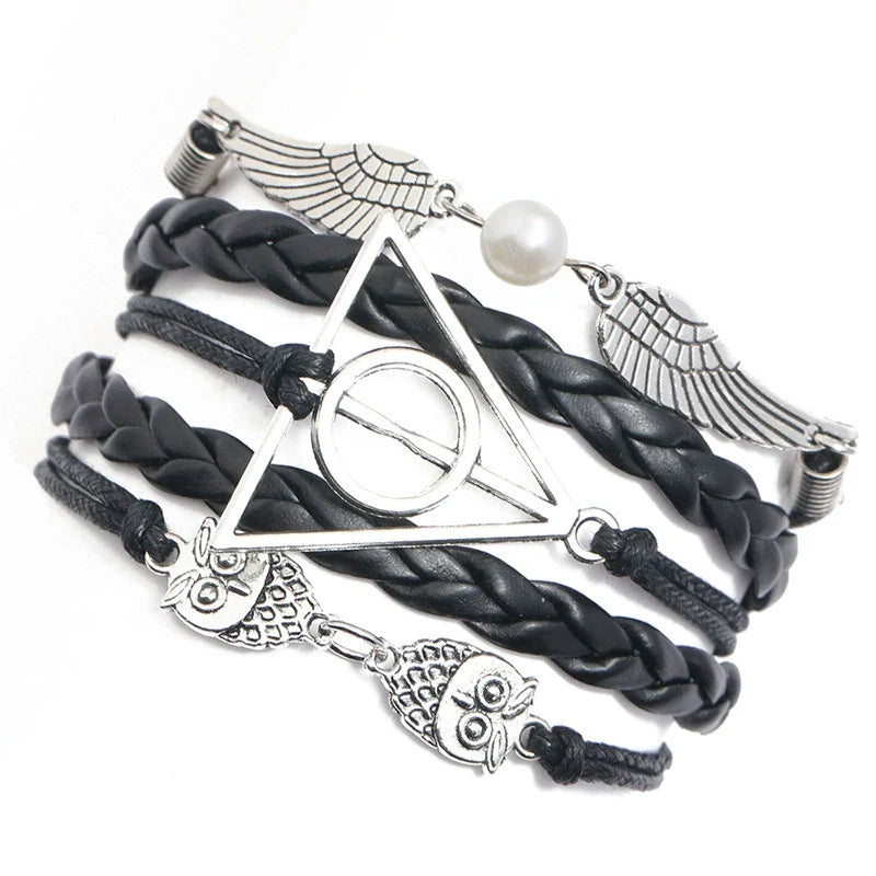 Fashion Harry Potter Deathly Hallows Leather Cord Bracelet