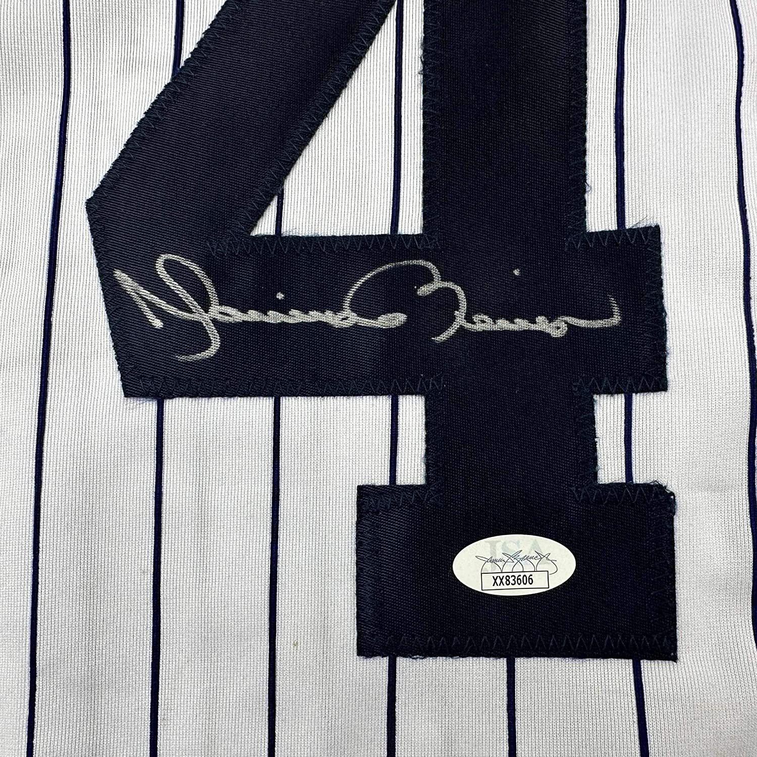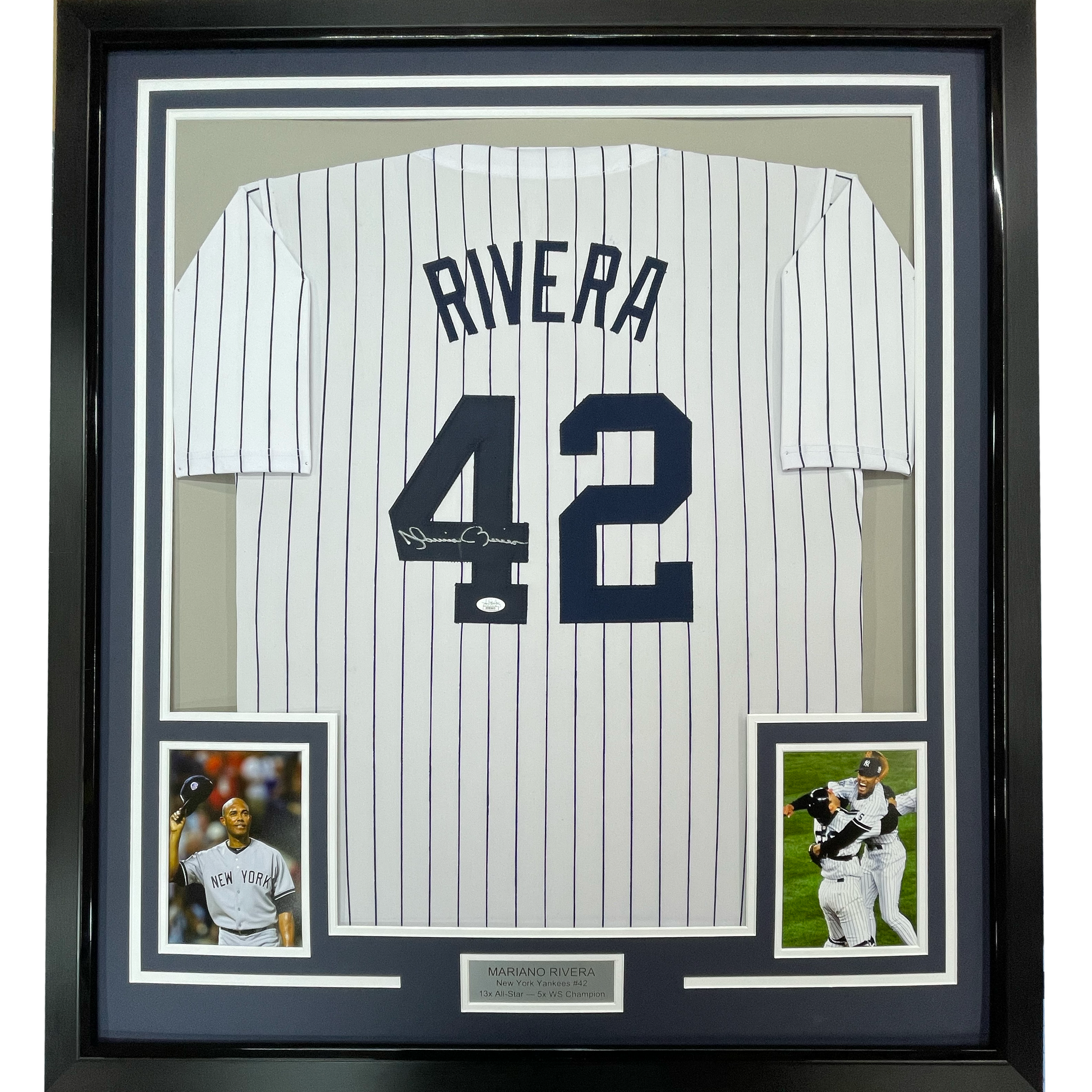 Framed Autographed/Signed Mariano Rivera 35x39 New York Pinstripe Baseball Jersey JSA COA/LOA