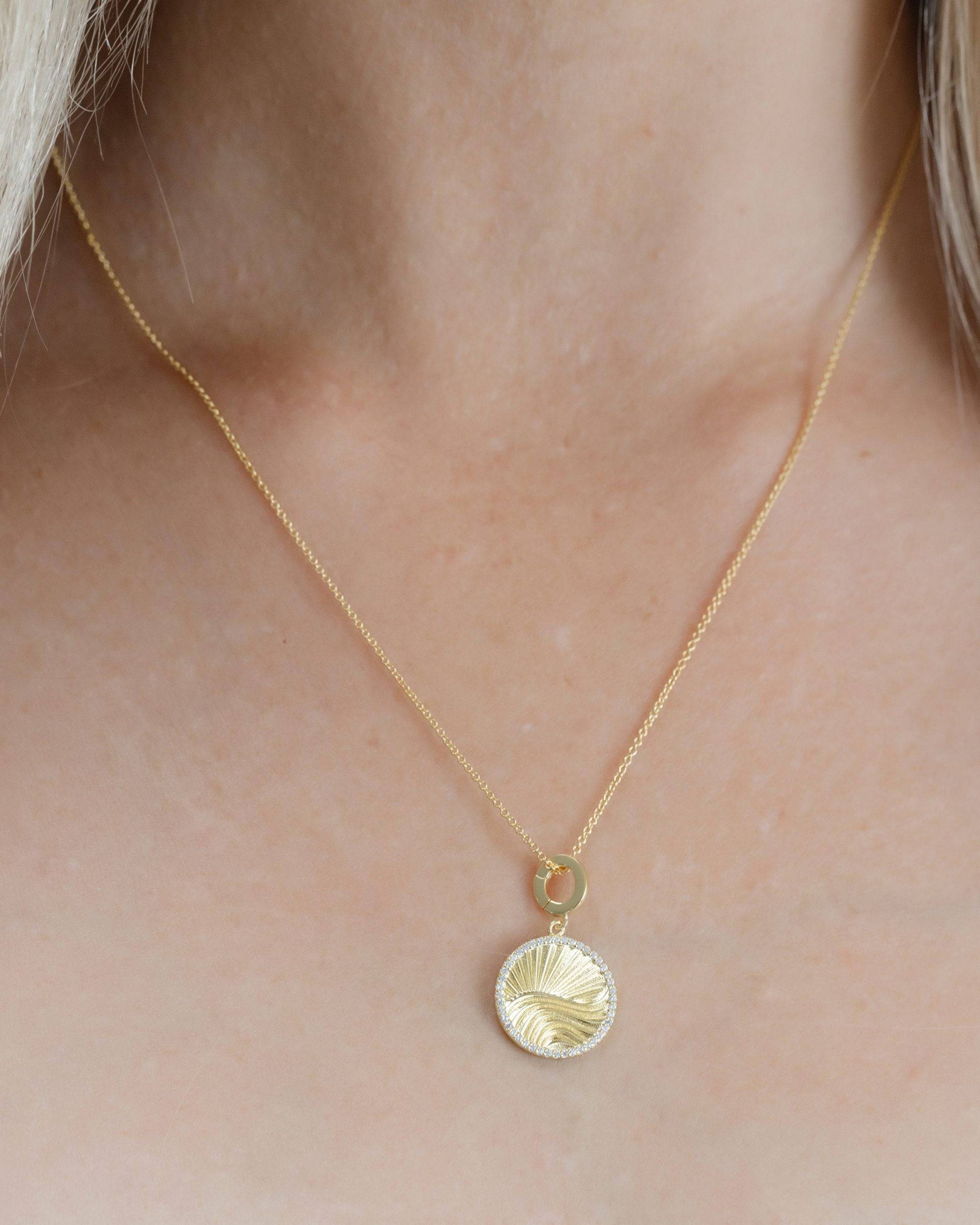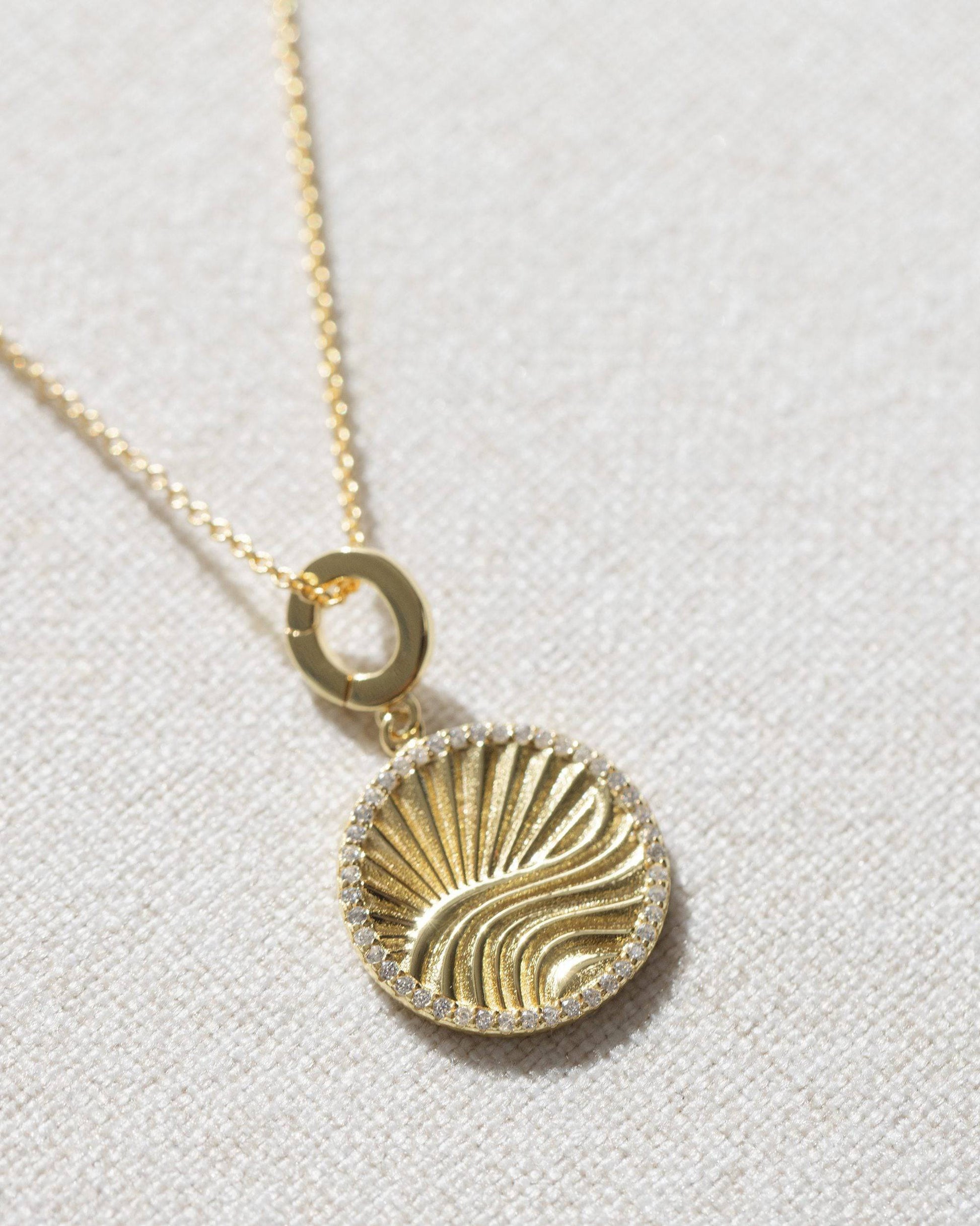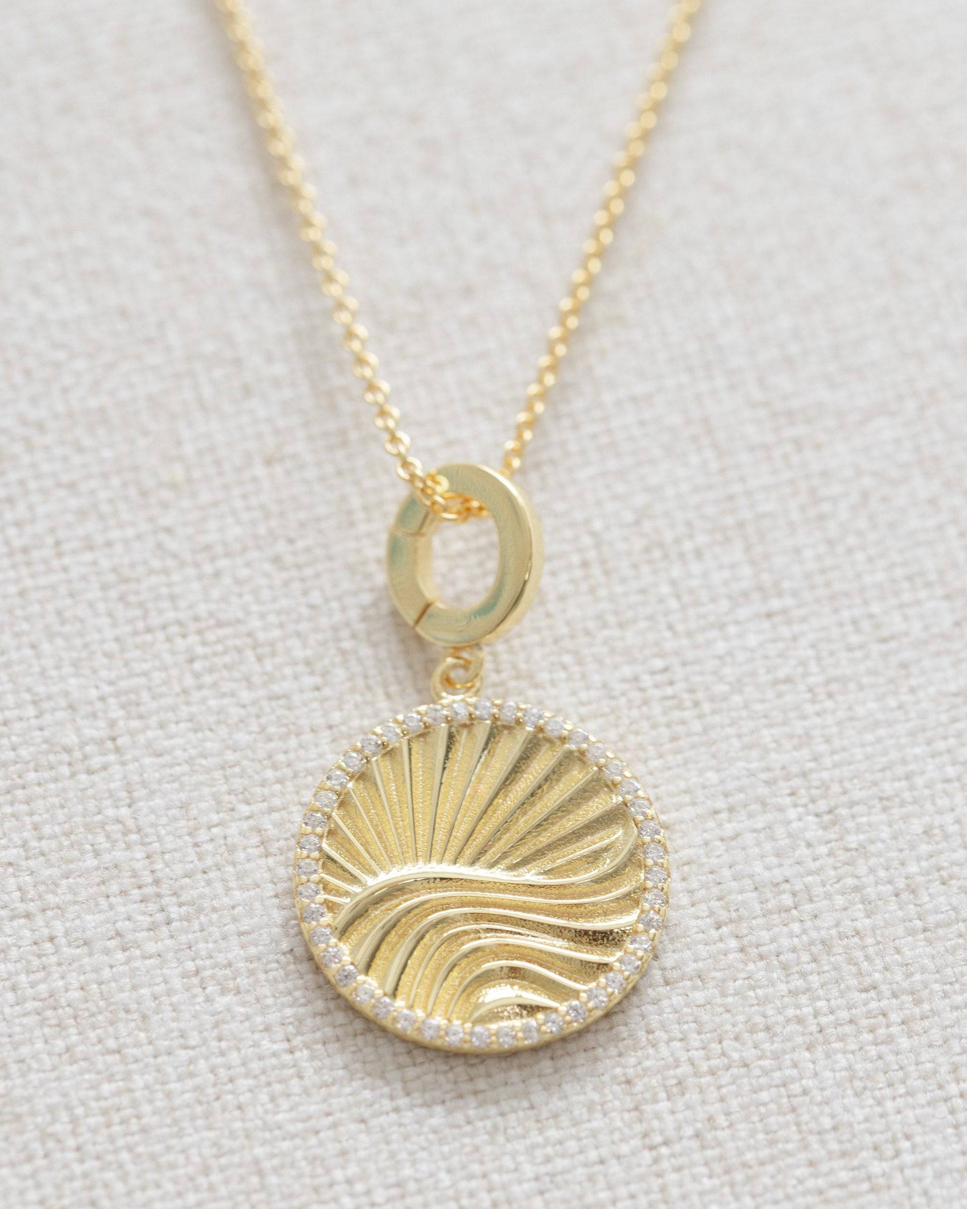 Crafted from high-quality 14k gold vermeil, the Gold Island Pendant is a stunning addition to any jewelry collection. With intricate design inspired by the ocean and shimmering crystals, this necklace is the perfect way to add a touch of elegance and natural beauty to any outfit. The detachable charm adds versatility, making it a must-have piece for any fashion-forward individual.