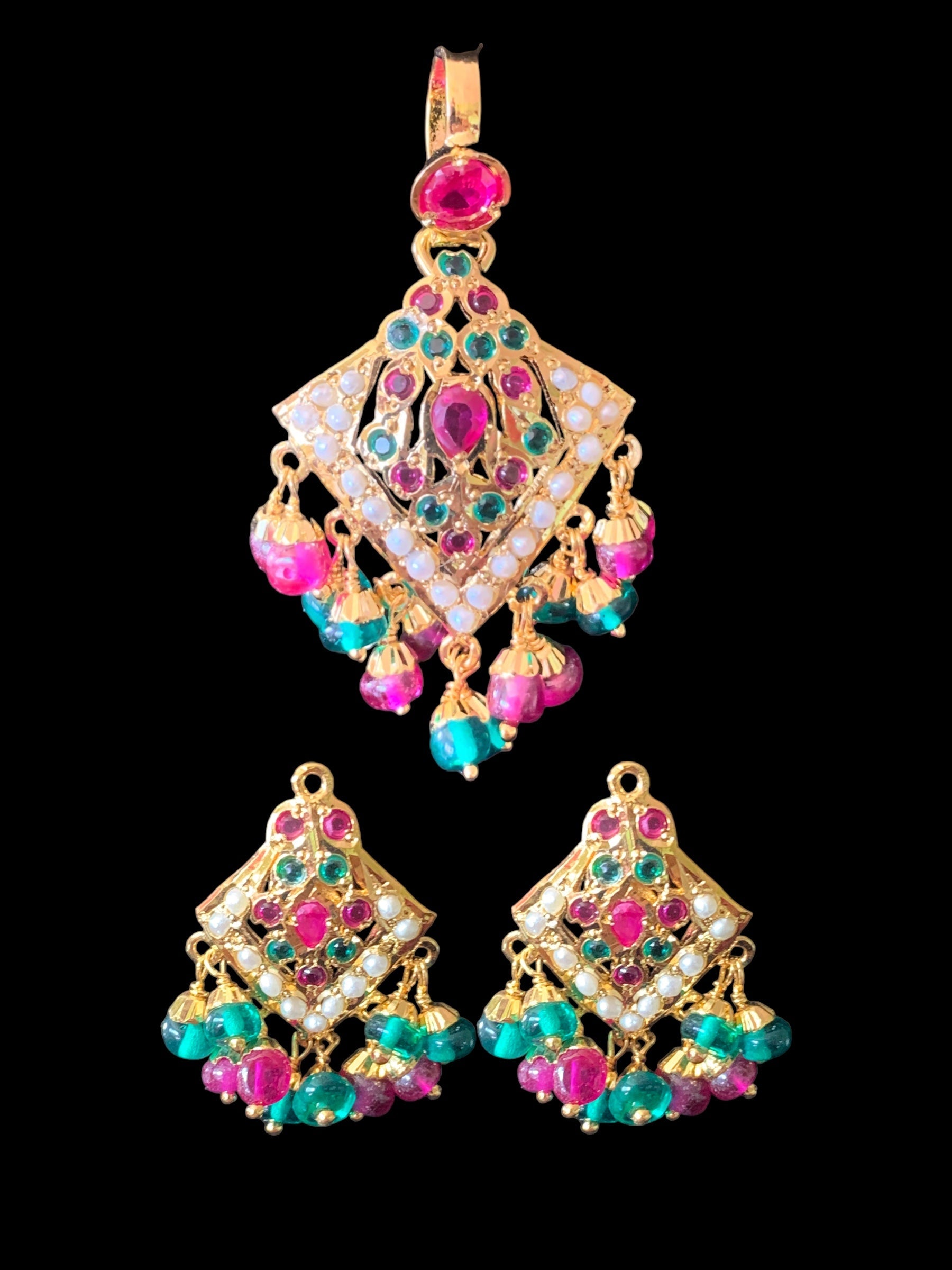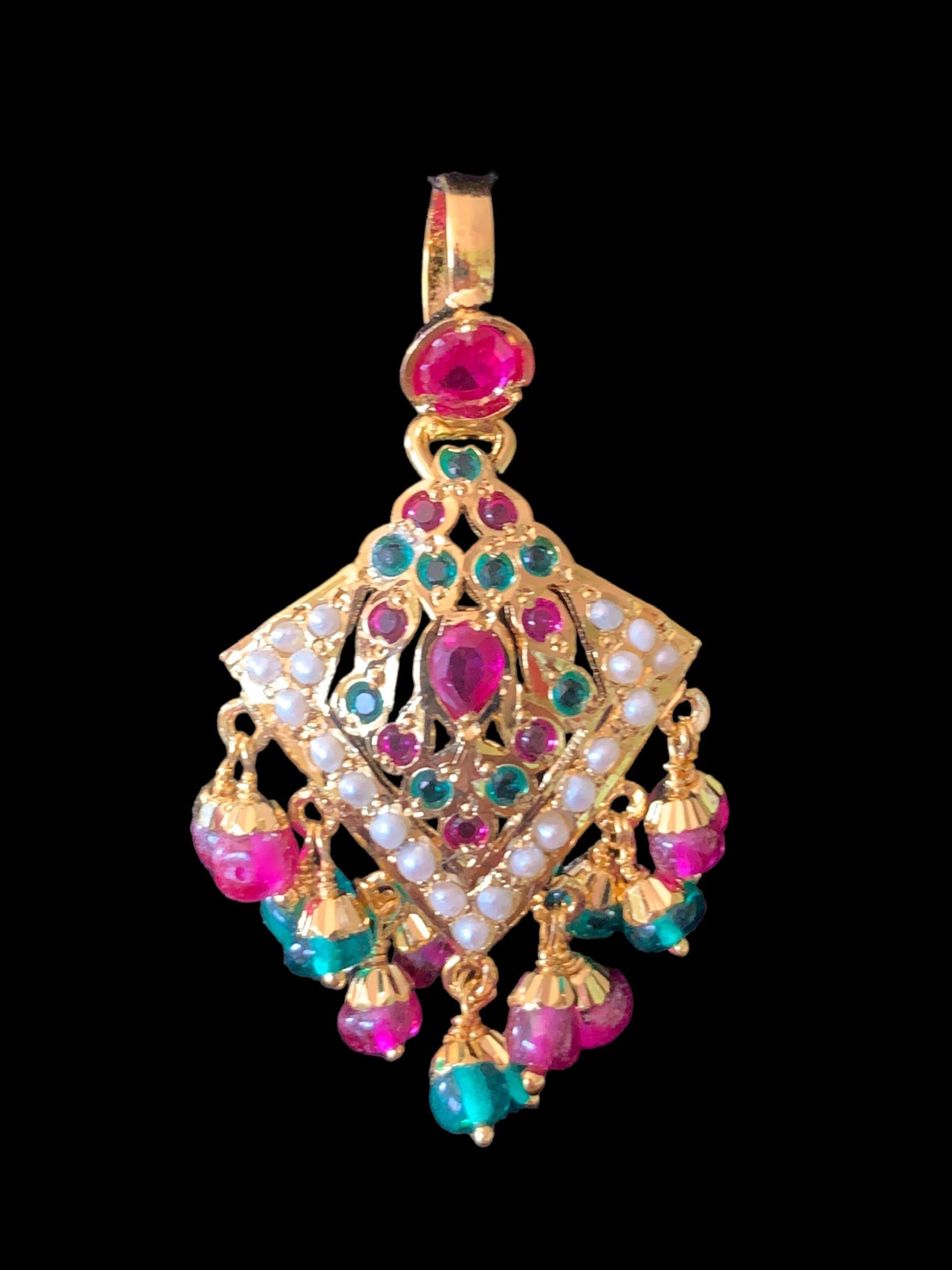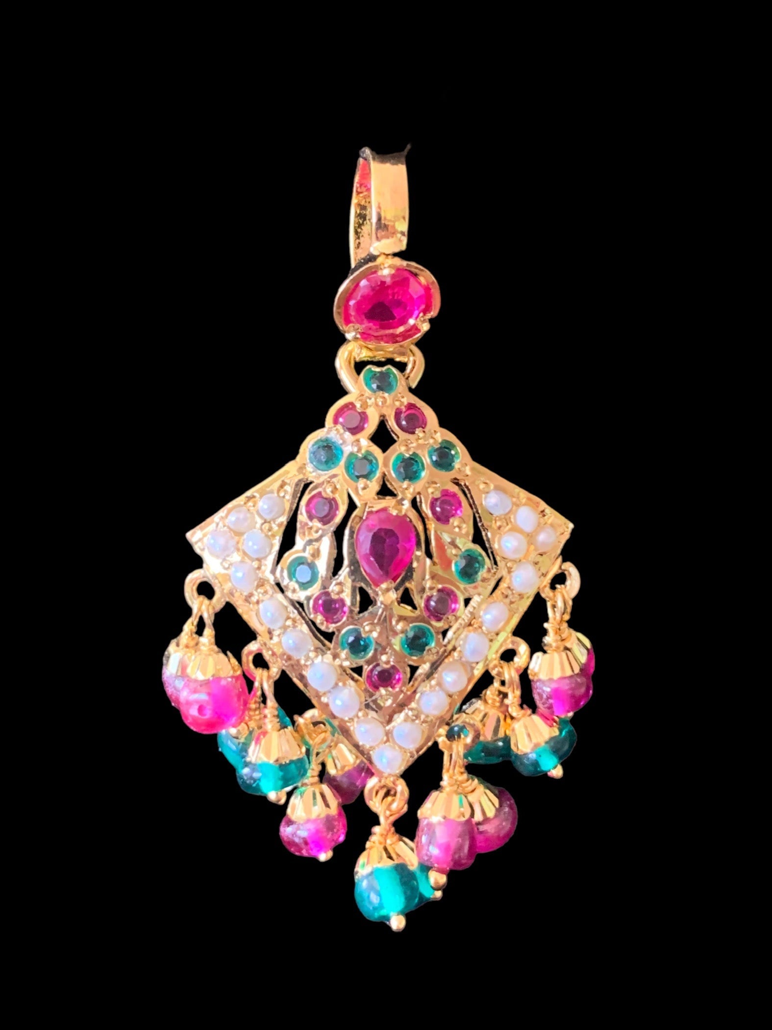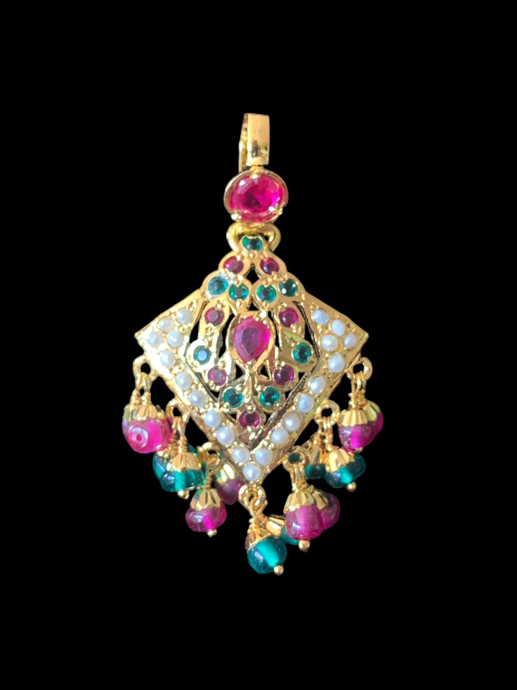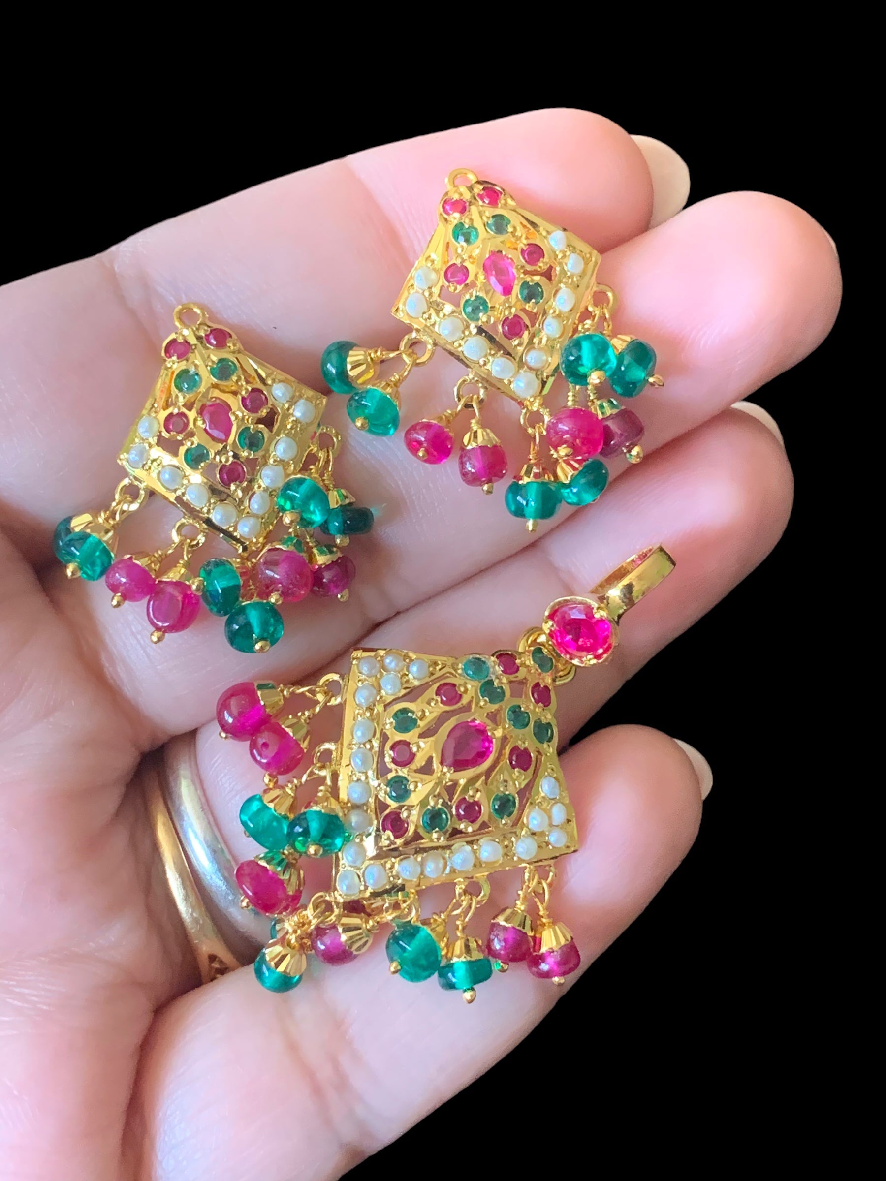 Gold plated silver pendant set in ruby emerald ( SHIPS IN 4 WEEKS )