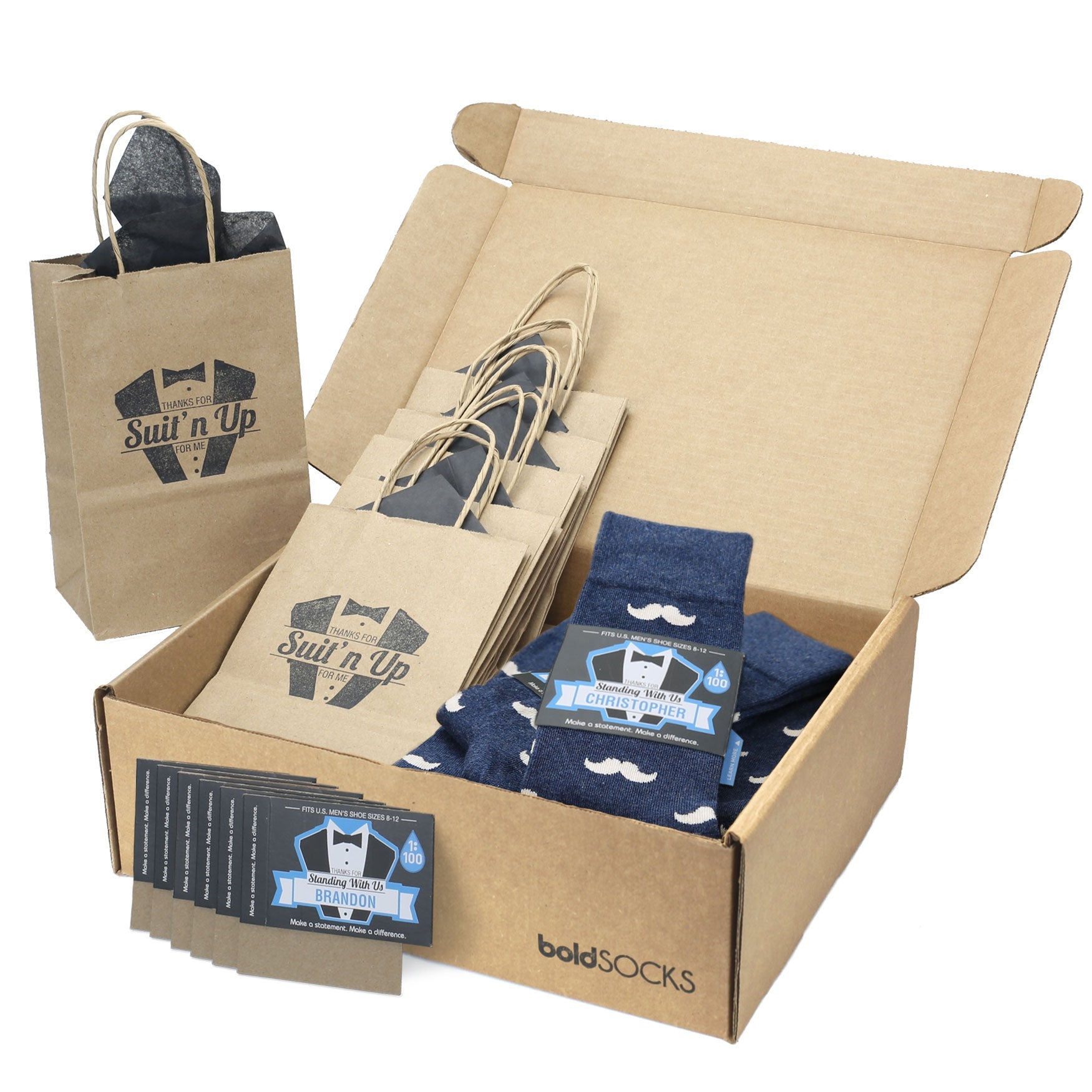 Groomsmen Gift Set Heathered Navy Mustache Men's Dress Socks