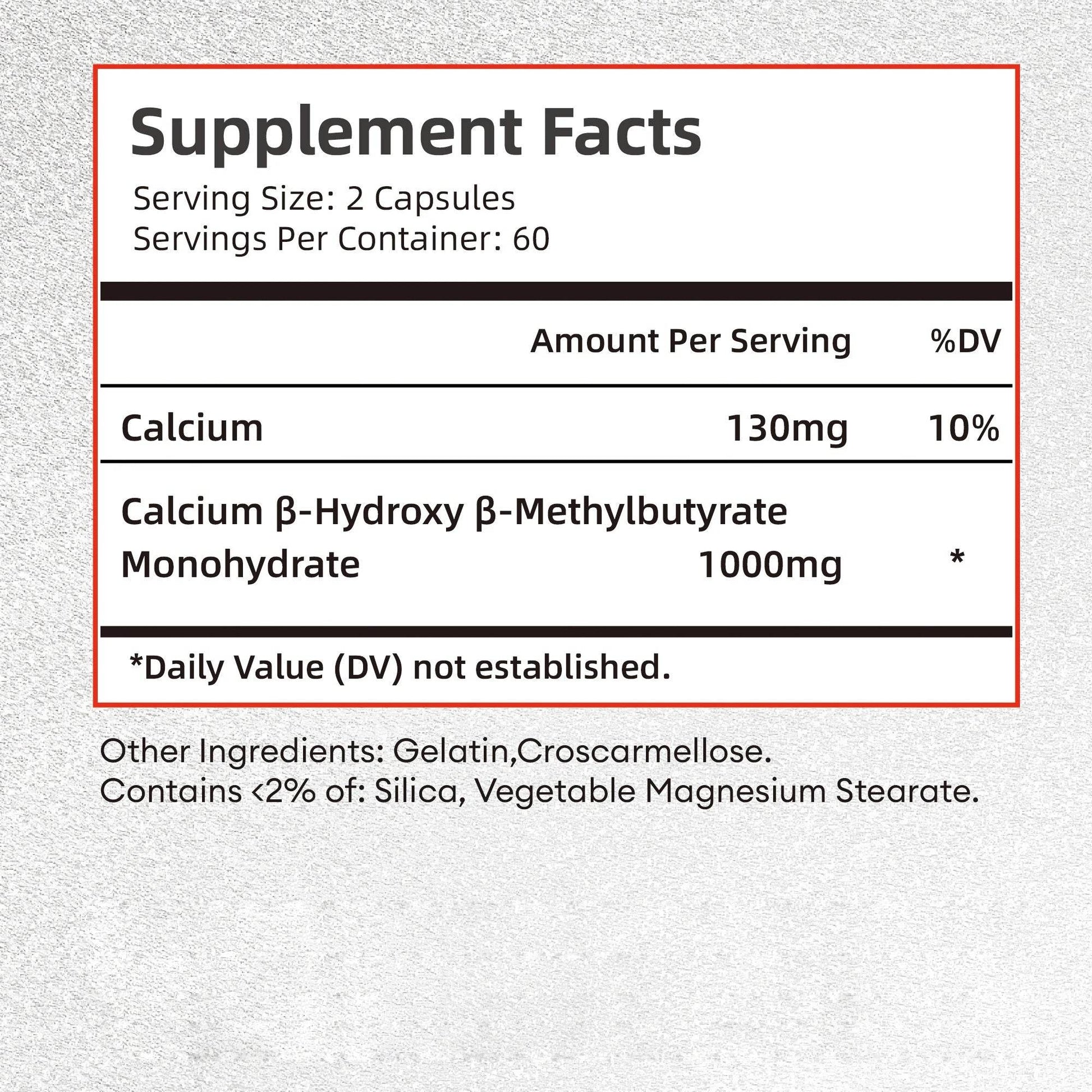 HMB Supplements - Improves Endurance, Builds Lean Muscle Mass and Promotes Muscle Recovery - 120 Capsules