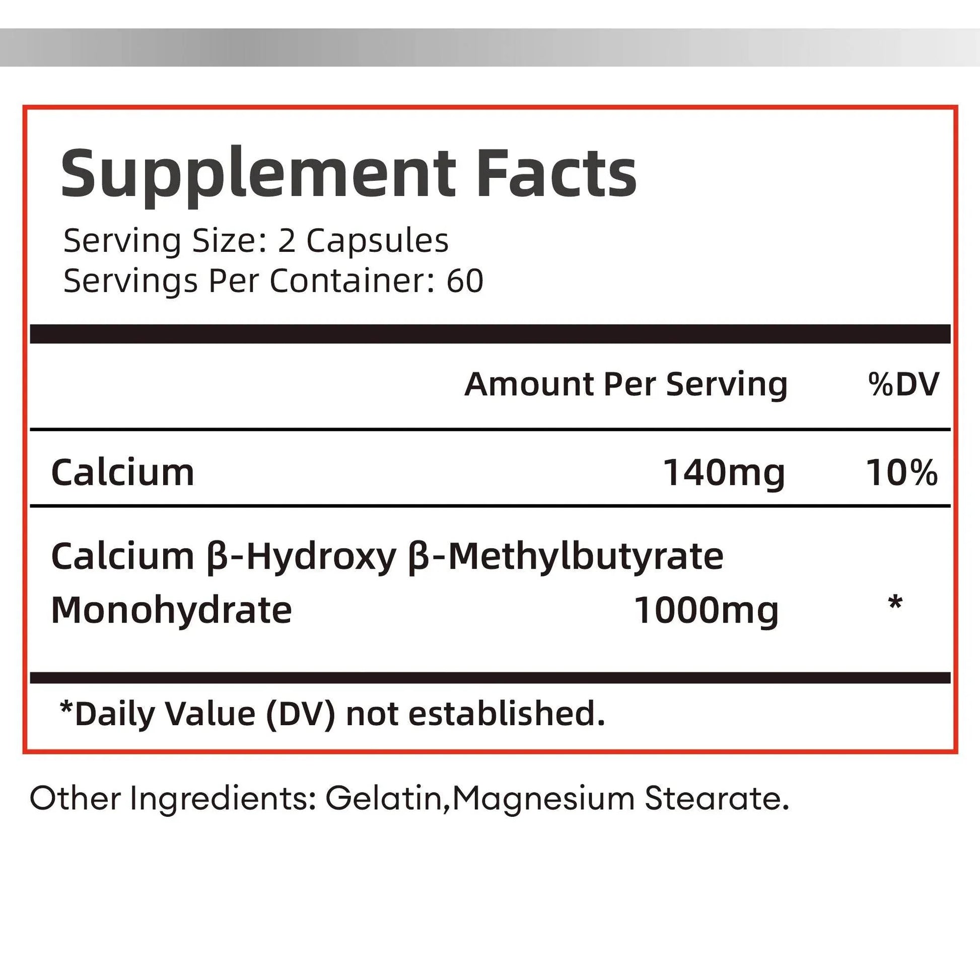 HMB Supplements - Replenish Energy and Improve Endurance, Promote Muscle Growth & Recovery Relieve Muscle Loss - 120 Capsules