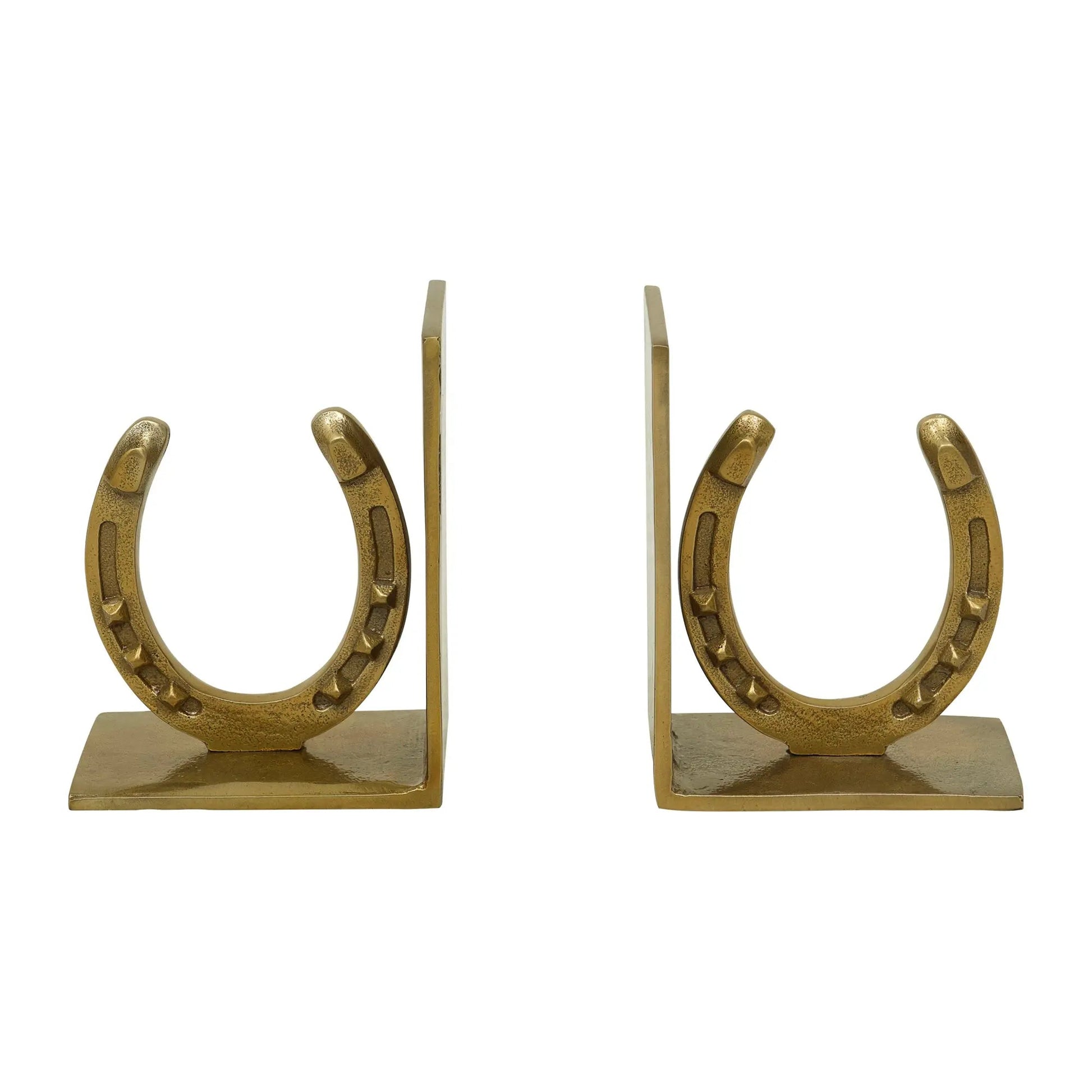 Huntley Horse shoe Bookends, Pair, Brass Antique Finish