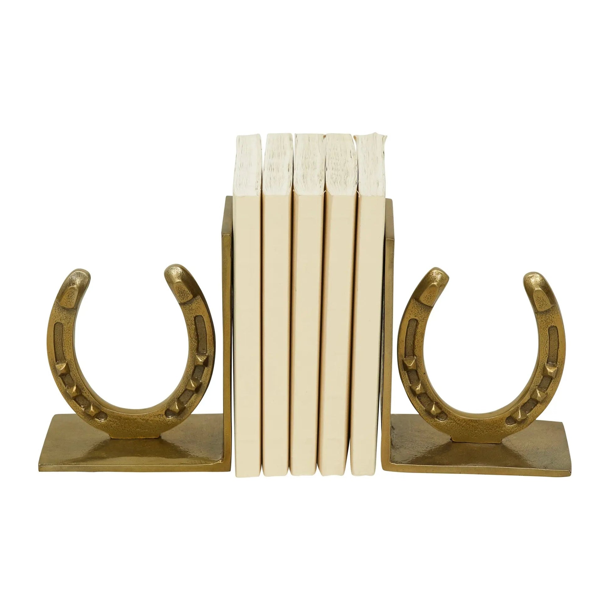 Add a touch of equestrian charm to your bookshelf with the Huntley Horse Shoe Pair of Bookends. Crafted from sturdy metal with a rich brass antique finish, these bookends feature a classic horseshoe design, symbolizing luck and timeless elegance. Perfect for organizing books in an office, study, or living room, they offer both style and stability. Whether you're an equestrian enthusiast or looking for a unique decorative accent, this pair of bookends makes a sophisticated statement while keeping your favorite reads neatly in place.