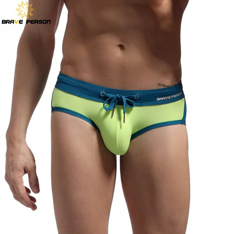 Description2: Male Swimming Briefs Patchwork Color Swimwear Shorts
