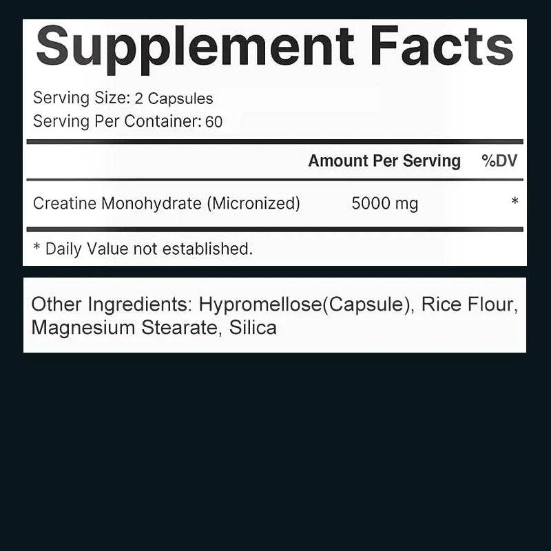 Micronized Creatine - Enhance Muscle Endurance and Improve Athletic Performance - 120 Capsules