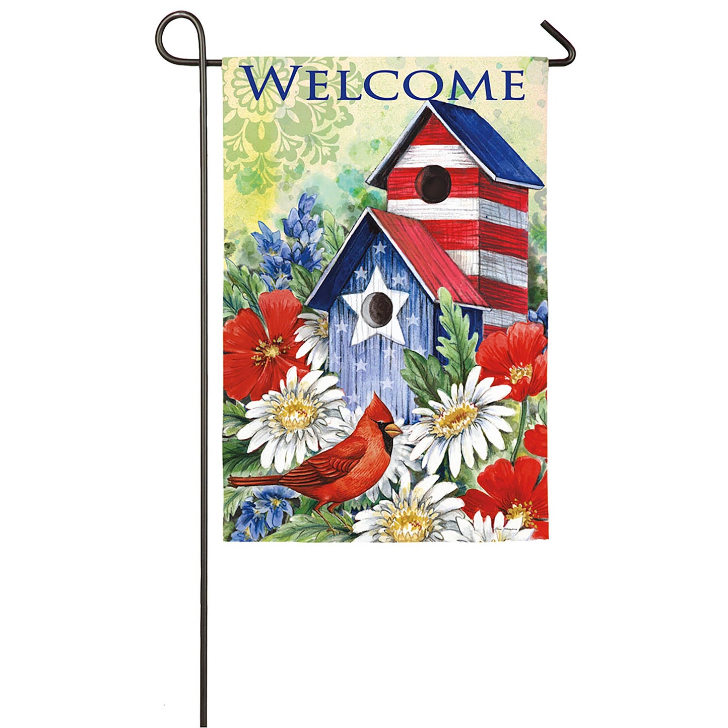 Patriotic Birdhouse & Cardinal Garden Sub Suede Flag