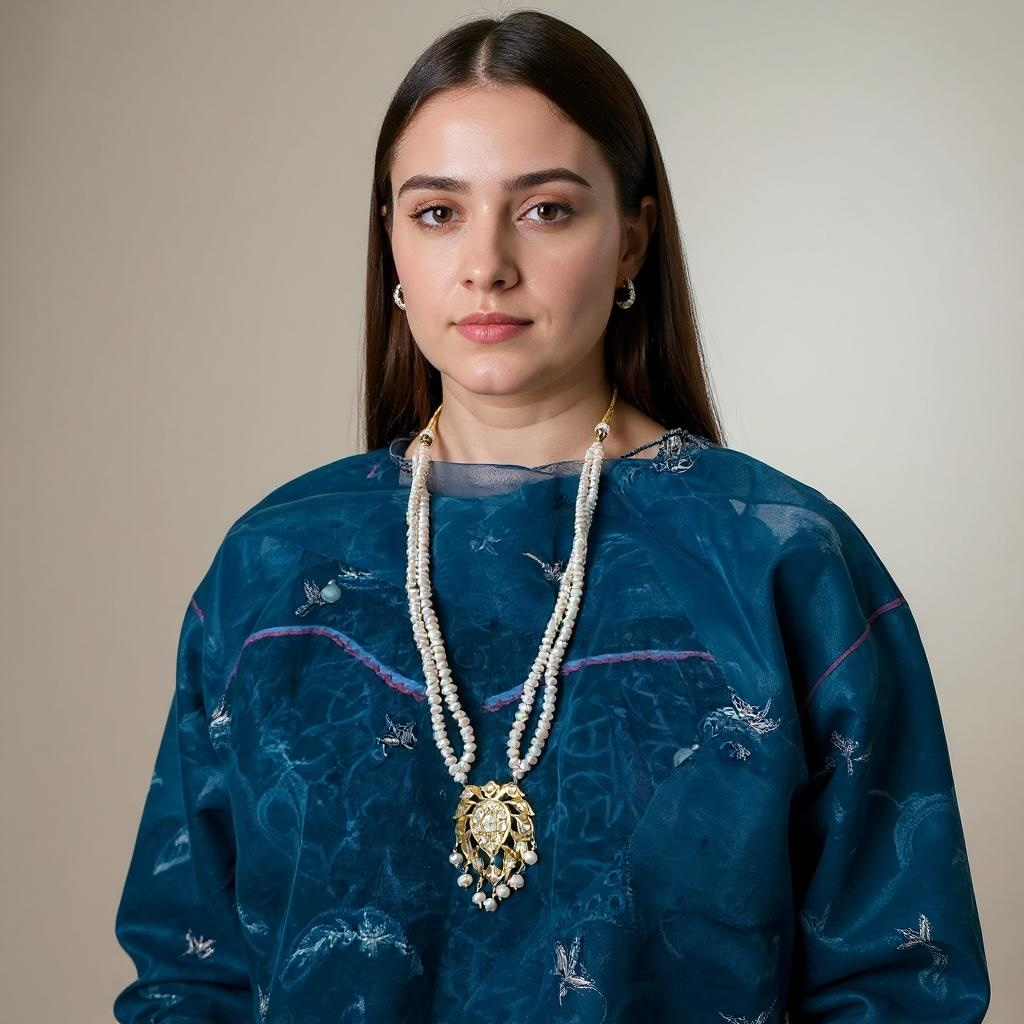 Elevate your jewelry collection with the Aurora Pendant Set, a timeless blend of heritage and craftsmanship. This handcrafted gold-plated set features a radiant 1.5-inch pendant adorned with high-quality Moissanite Polki stones and genuine freshwater pearls, capturing the elegance of authentic Hyderabadi design.