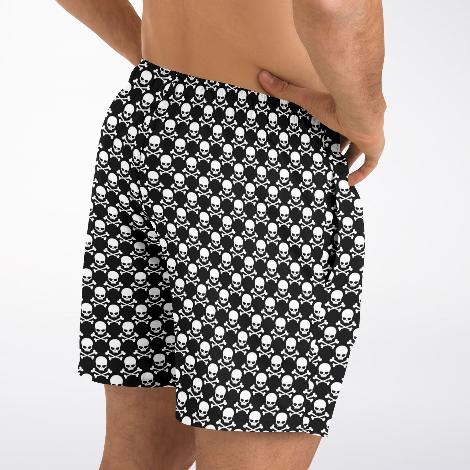 Look and stay cool with these shorter-length swim trunks that hit above the knee. They come in a fast-dry fabric, and feature a drawstring waistband, mesh basket lining and mesh-lined side pockets.