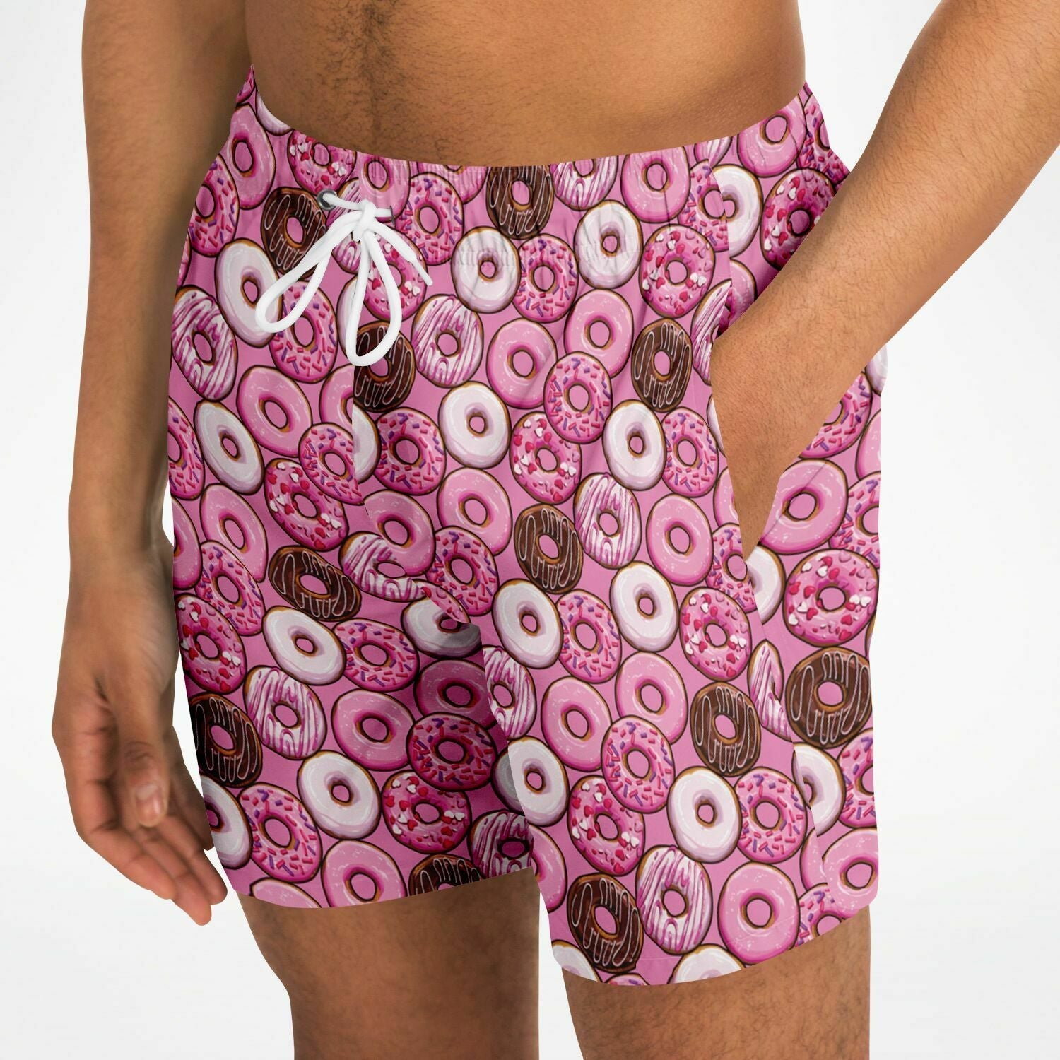 Look and stay cool with these shorter-length swim trunks that hit above the knee. They come in a fast-dry fabric, and feature a drawstring waistband, mesh basket lining and mesh-lined side pockets.