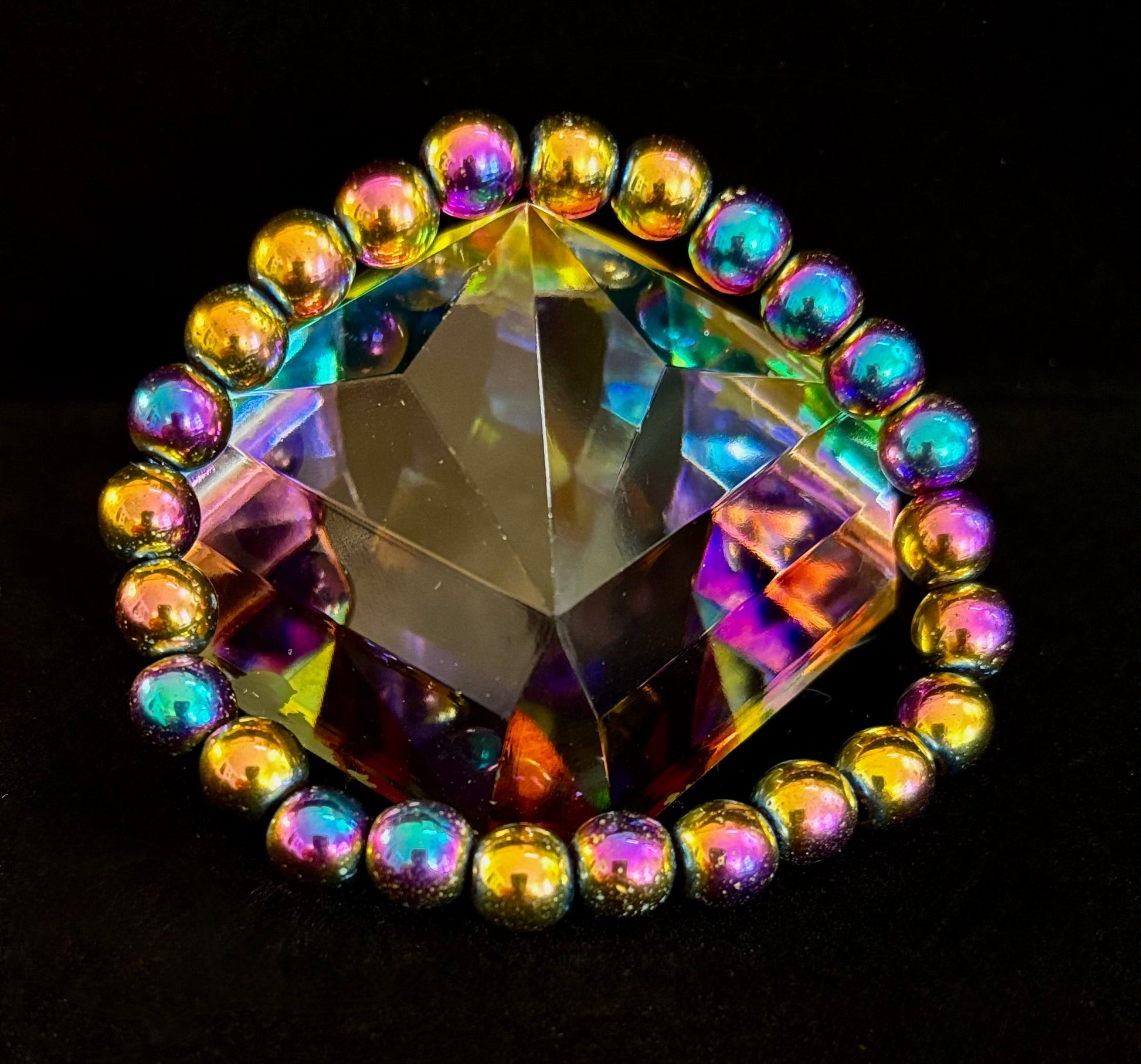 Show your true colors with our Rainbow Hematite Beaded Bracelet, a bold accessory designed to celebrate love, unity, and individuality. Featuring smooth, polished hematite beads finished in a stunning rainbow sheen, this bracelet radiates vibrant energy that makes it perfect for Pride celebrations, parades, festivals, or everyday wear.