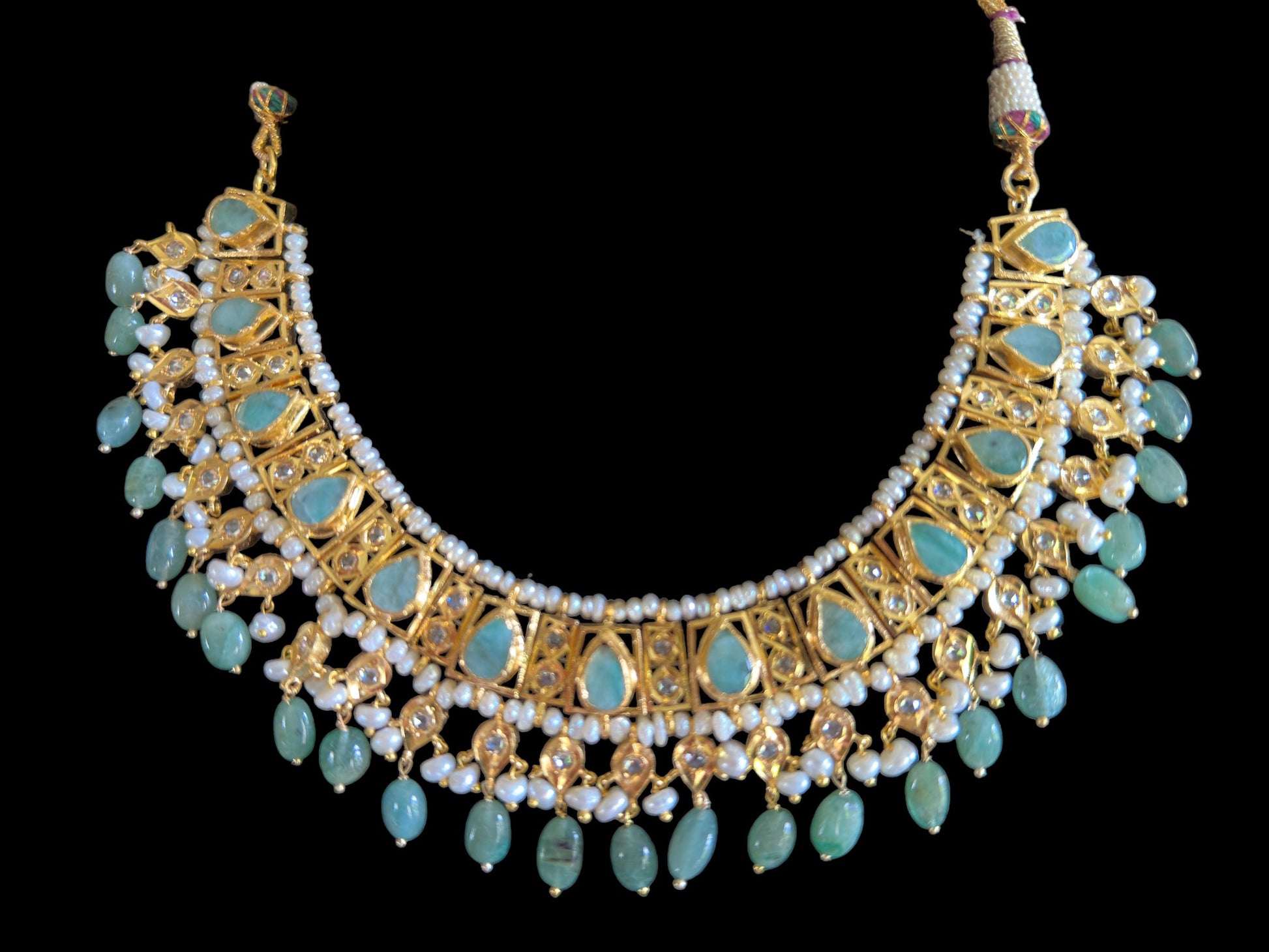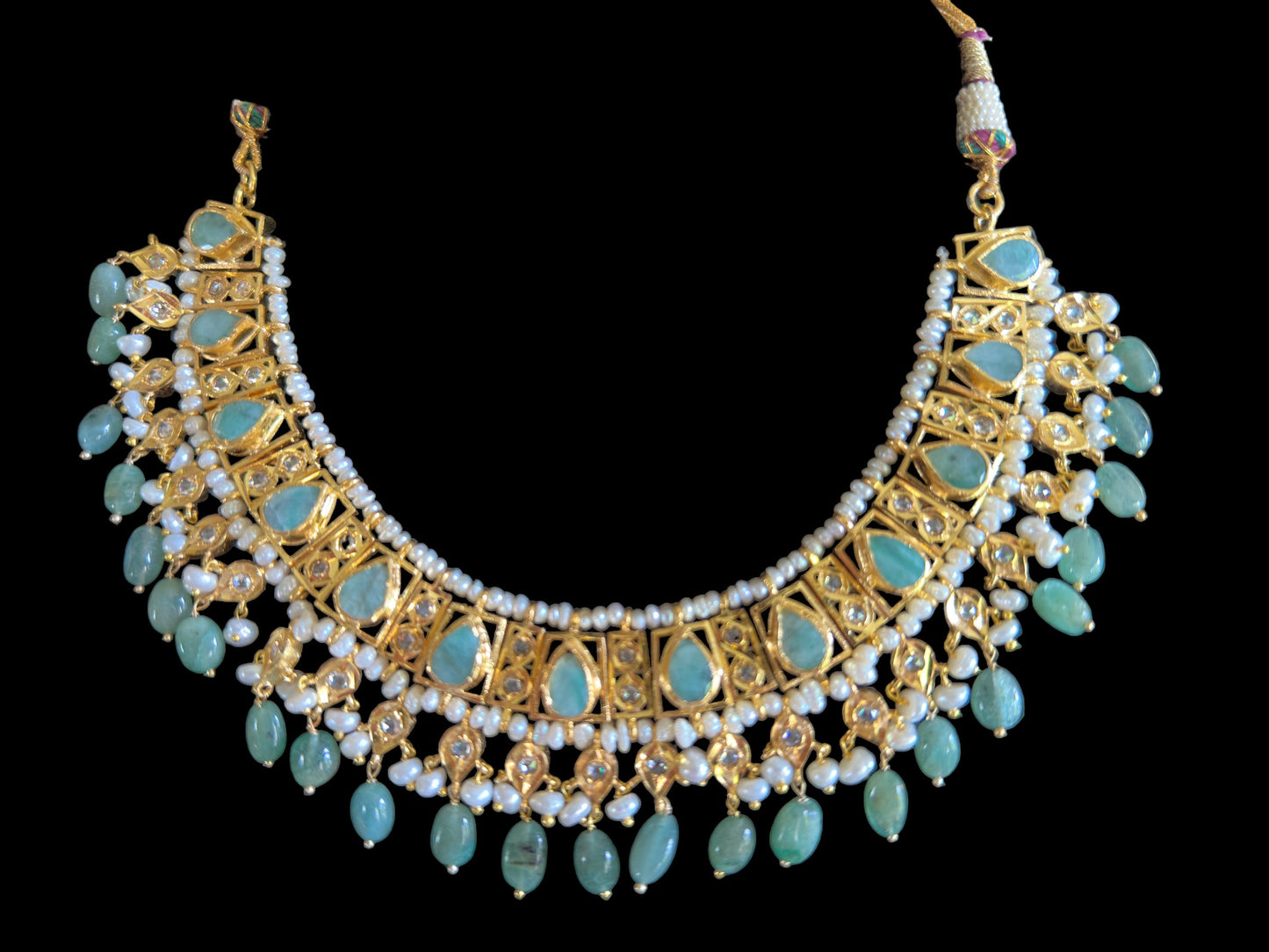 RAKIBA gold plated silver necklace set in emerald with fresh water pearls ( SHIPS IN 5 WEEKS )