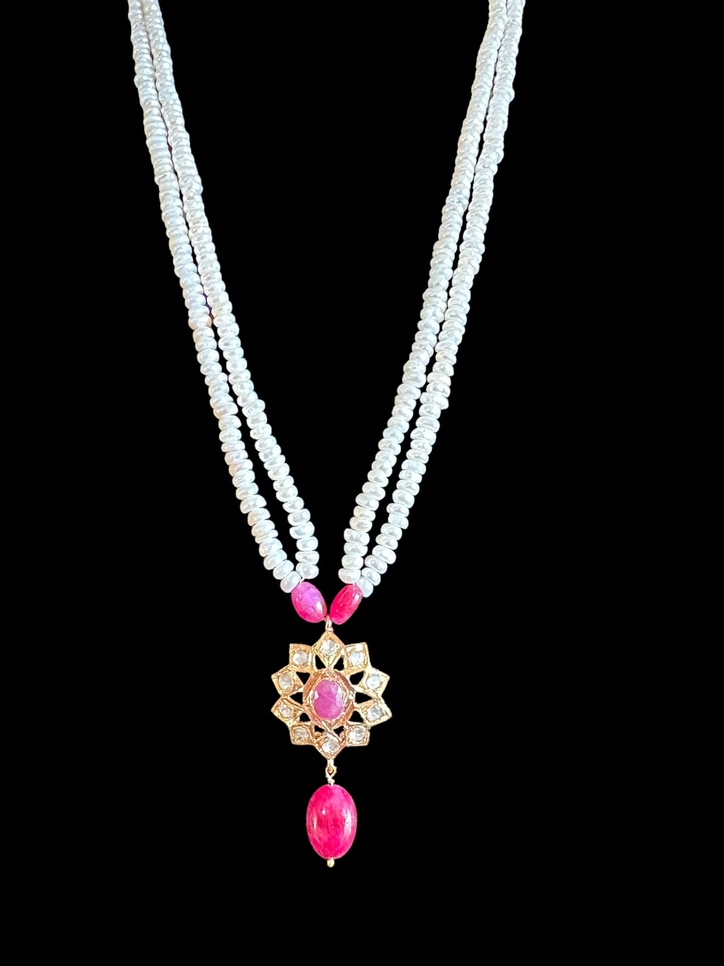 Ruby with pearl pendant set in gold plated silver ( READY TO SHIP)