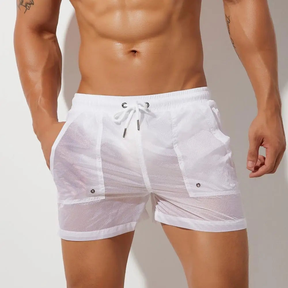SEOBEAN Men's Summer Shorts Mesh Lined Quick-drying Beach Shorts 100% Nylon Gym Fitness Surf Trunks Shorts Sexy Men Board Shorts