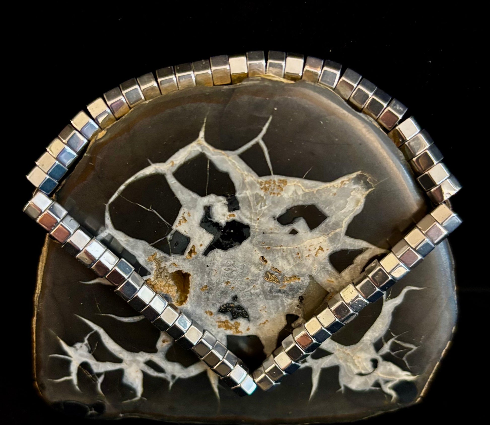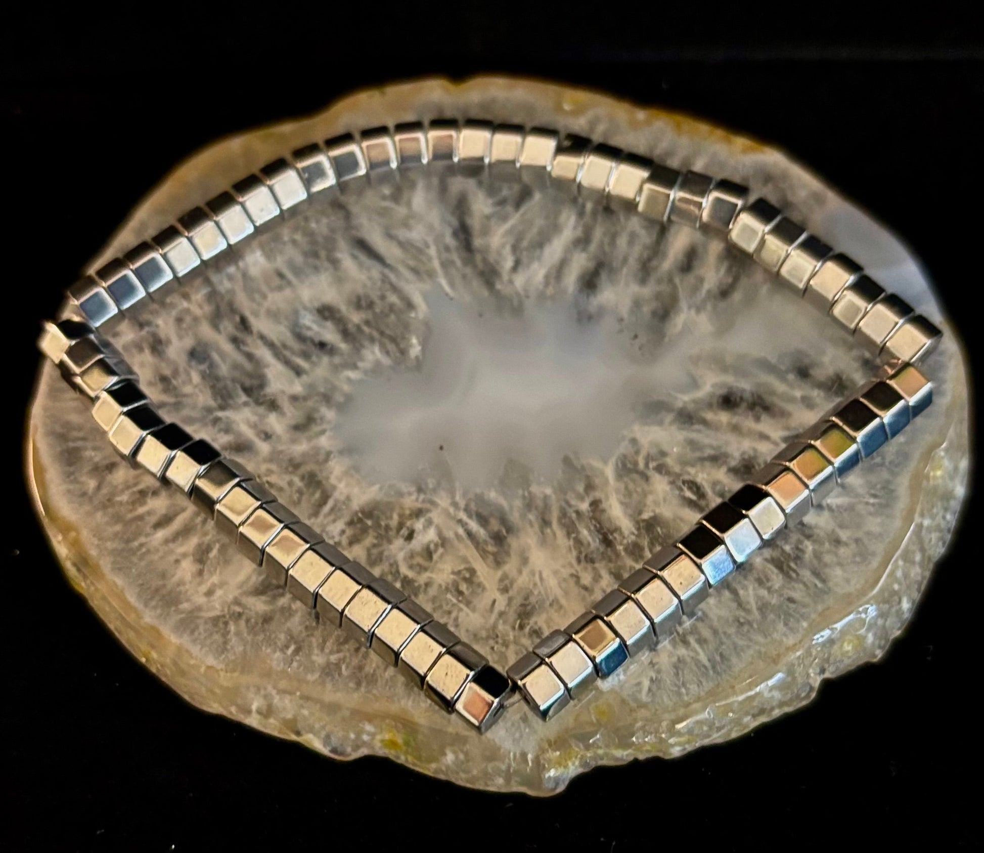 Elevate your accessory game with this Silver Cube Metal Beaded Bracelet, a modern piece that blends bold design with minimalist style. Featuring polished cube-shaped beads, this bracelet creates a clean, geometric look that’s both edgy and versatile. Perfect for medium to large wrists, it offers a comfortable stretch fit that’s easy to wear daily.