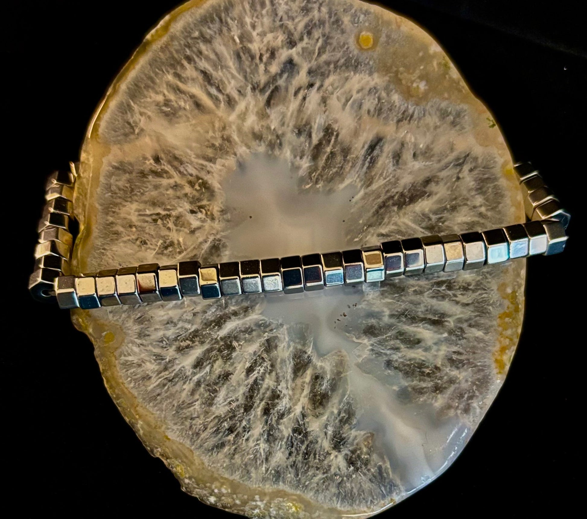Sleek Silver Cube Beaded Bracelet – Minimalist Style for Any Occasion