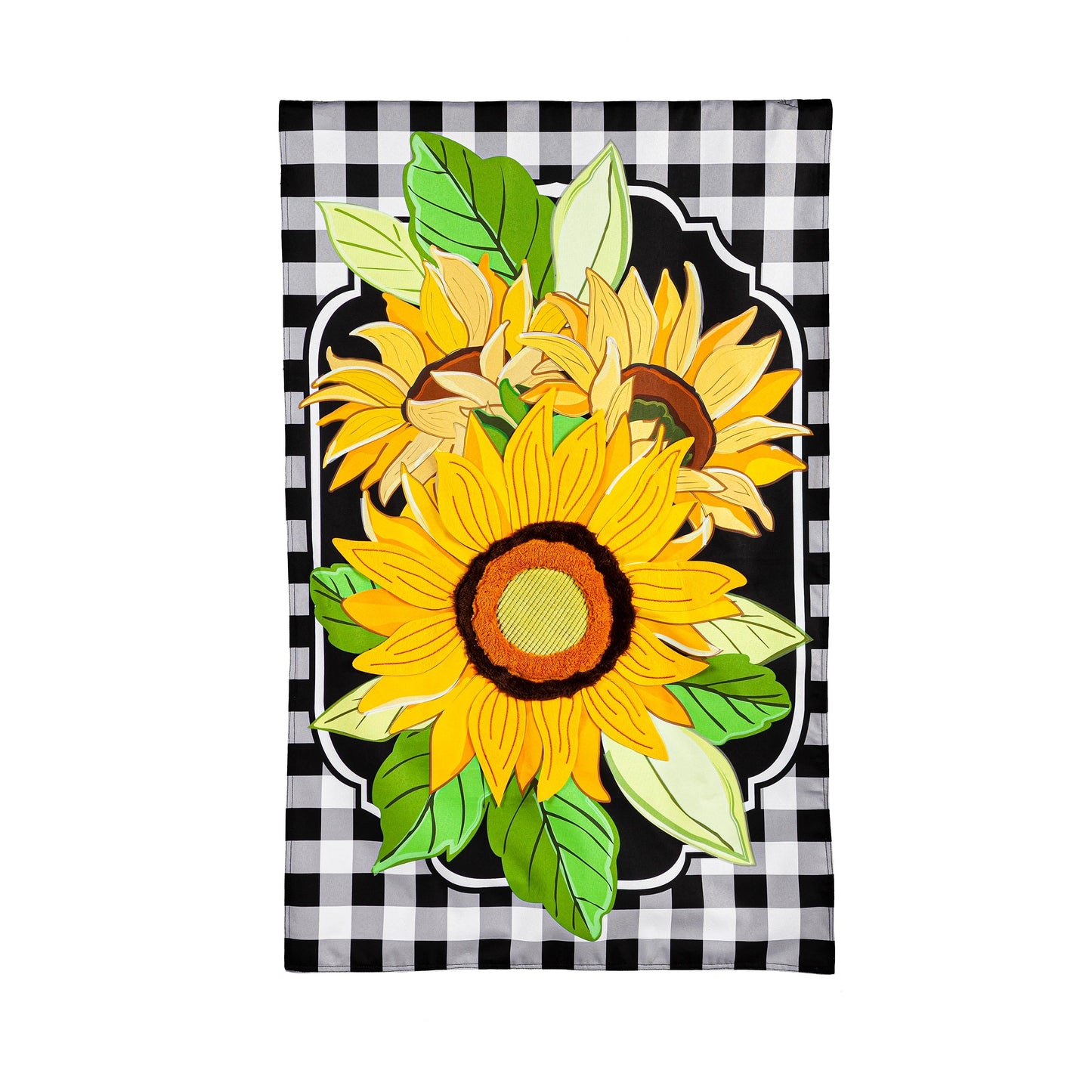Sunflowers depict the epitome of summer with their golden petals. Paired with a classic black and white checkered pattern, this Sunflowers and Checks House Linen Flag will make a beautiful statement wherever you display it! Made of lightweight, durable linen material, this lively flag is designed to withstand a variety of weather conditions. Our flag creation process involves combining pieces of fade-resistant fabric with tight, detailed stitching in order to create a dimensional effect. Printed ink colors are protected with a watertight seal, so you can enjoy your flag for years to come.