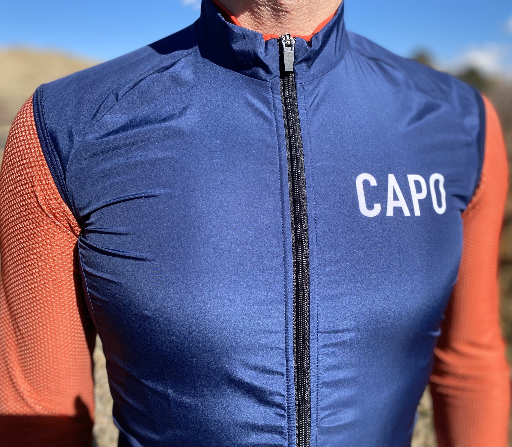 A two-way camlock zipper enables on-the-fly thermal regulation. Three rear pockets maximize storage on longer rides. Capo waist elastic to maintain fit.