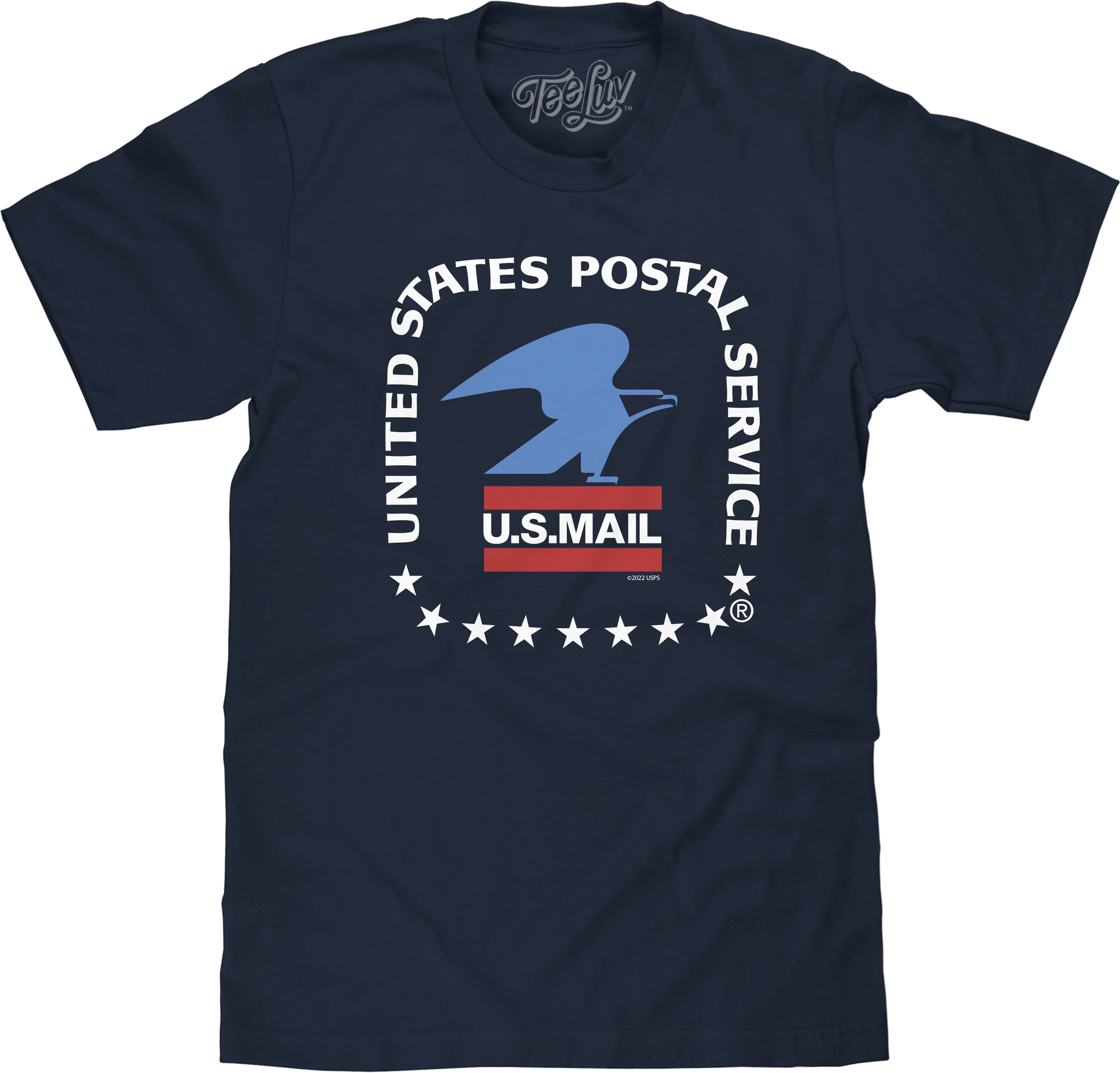 Reorganized in 1970, the Post Office Department became the United States Postal Service, and adopted the powerful, all-American "standing eagle" as its official seal - a fitting emblem for the organization that processes and delivers 48 percent of the world's mail! To help pay tribute to the USPS team's hard work delivering mail across the USA - we've crafted this graphic tee featuring the instantly recognizable Standing Eagle seal and "U.S. Mail" text, bordered by white stars and "United States Postal Service" text. To complete the retro look and feel on this USPS shirt - we've printed it on a soft, navy blue cotton tee.