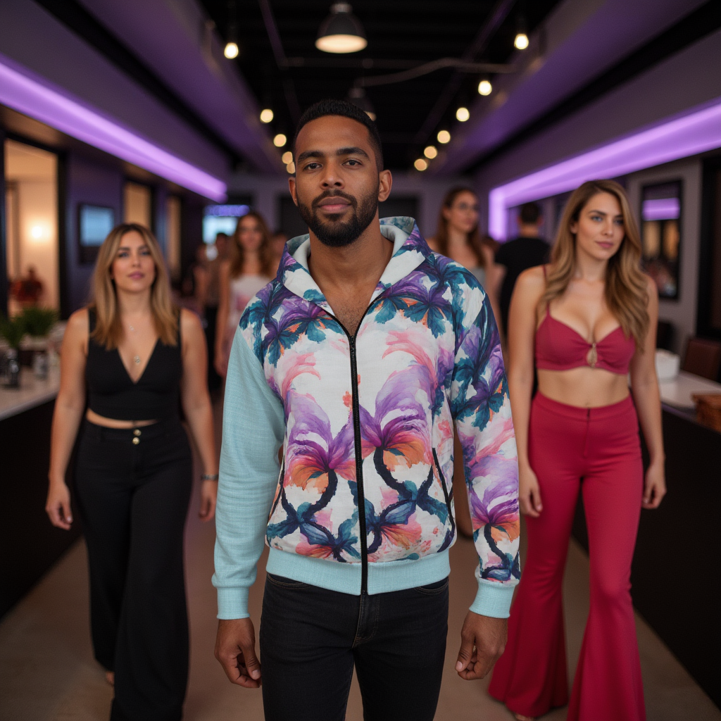 This zipped fleece jacket will keep you warm and cozy during the cold winter months. It features an attractive all-over print and is designed for easy customization without noticeable white lines at the seams. The jacket has a large front pocket, a black zipper, a spacious hood, and is custom cut and sewn. It’s the perfect choice for staying comfortable this winter.