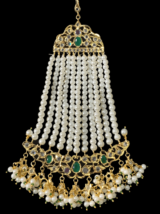 DJET21 Madhuri earrings tika set in pearls ( READY TO SHIP )