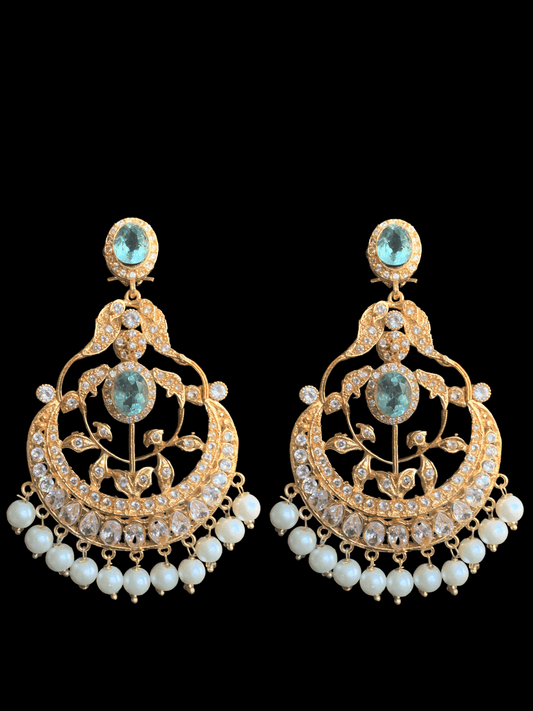 DER257 aqua blue Cz earrings with pearls (SHIPS IN 2 WEEKS )