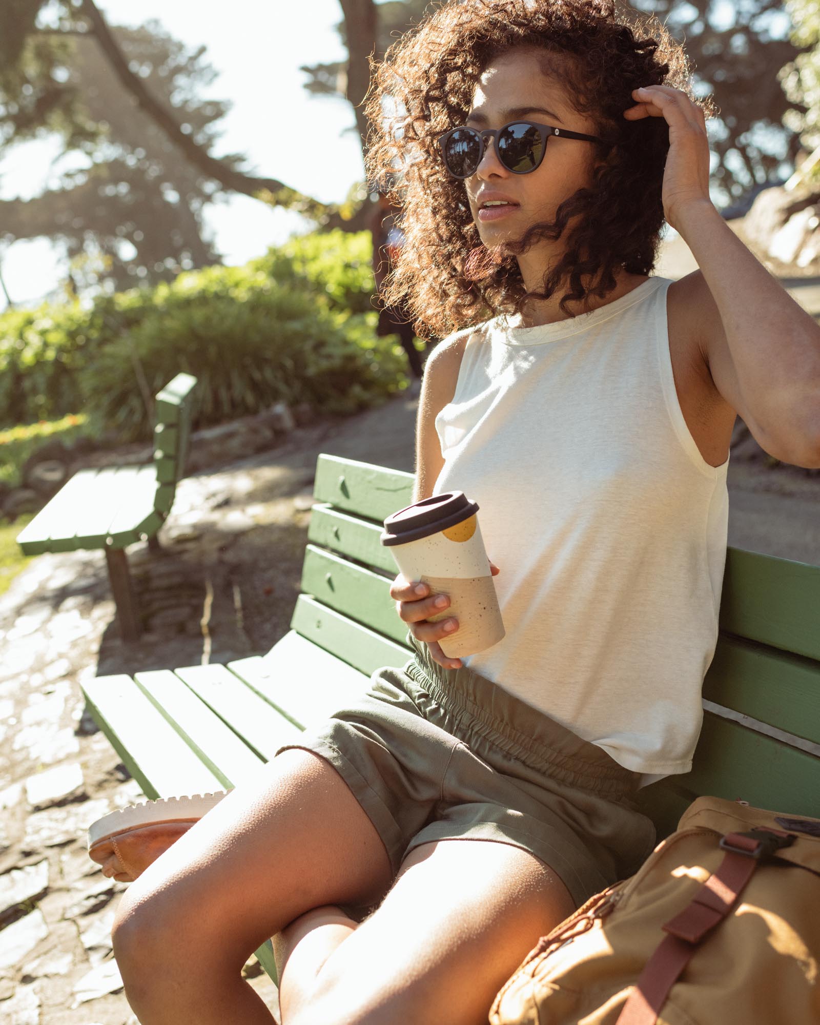 Your favorite ceramic mug, now travel-friendly with a silicone lid. The ideal companion to go zero-waste at your local coffee shop.
